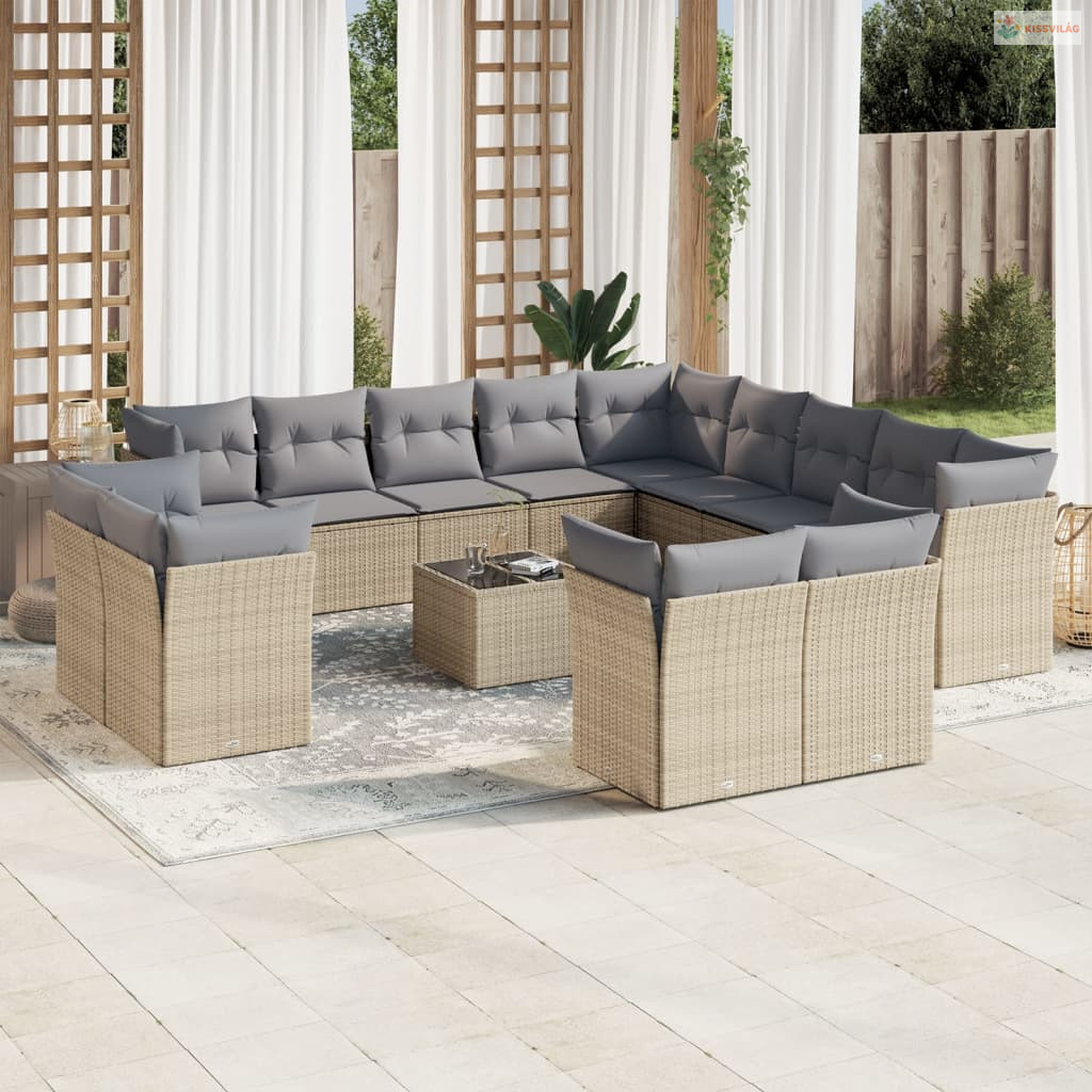 14 részes bézs polyrattan kerti ülőgarnitúra párnával