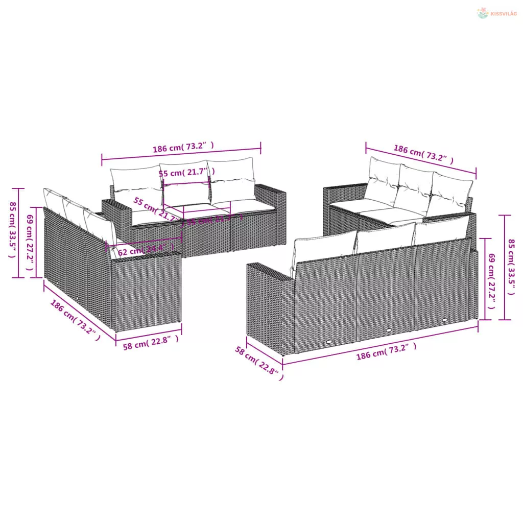 12 részes bézs polyrattan kerti ülőgarnitúra párnákkal