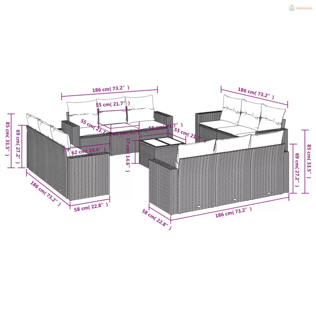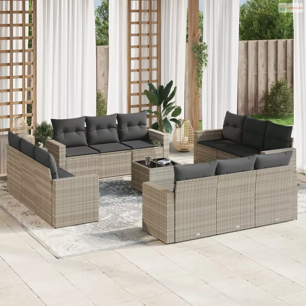 13 részes világosszürke polyrattan kerti ülőgarnitúra párnákkal