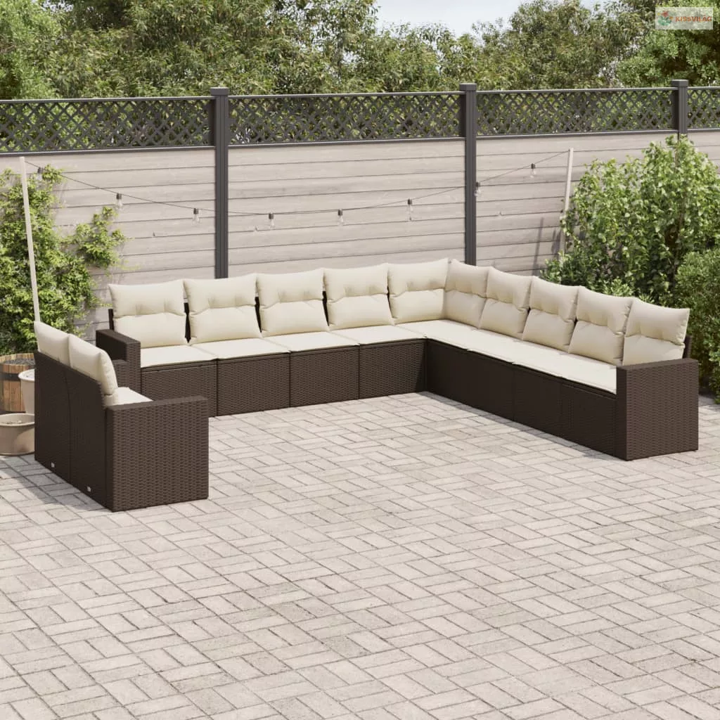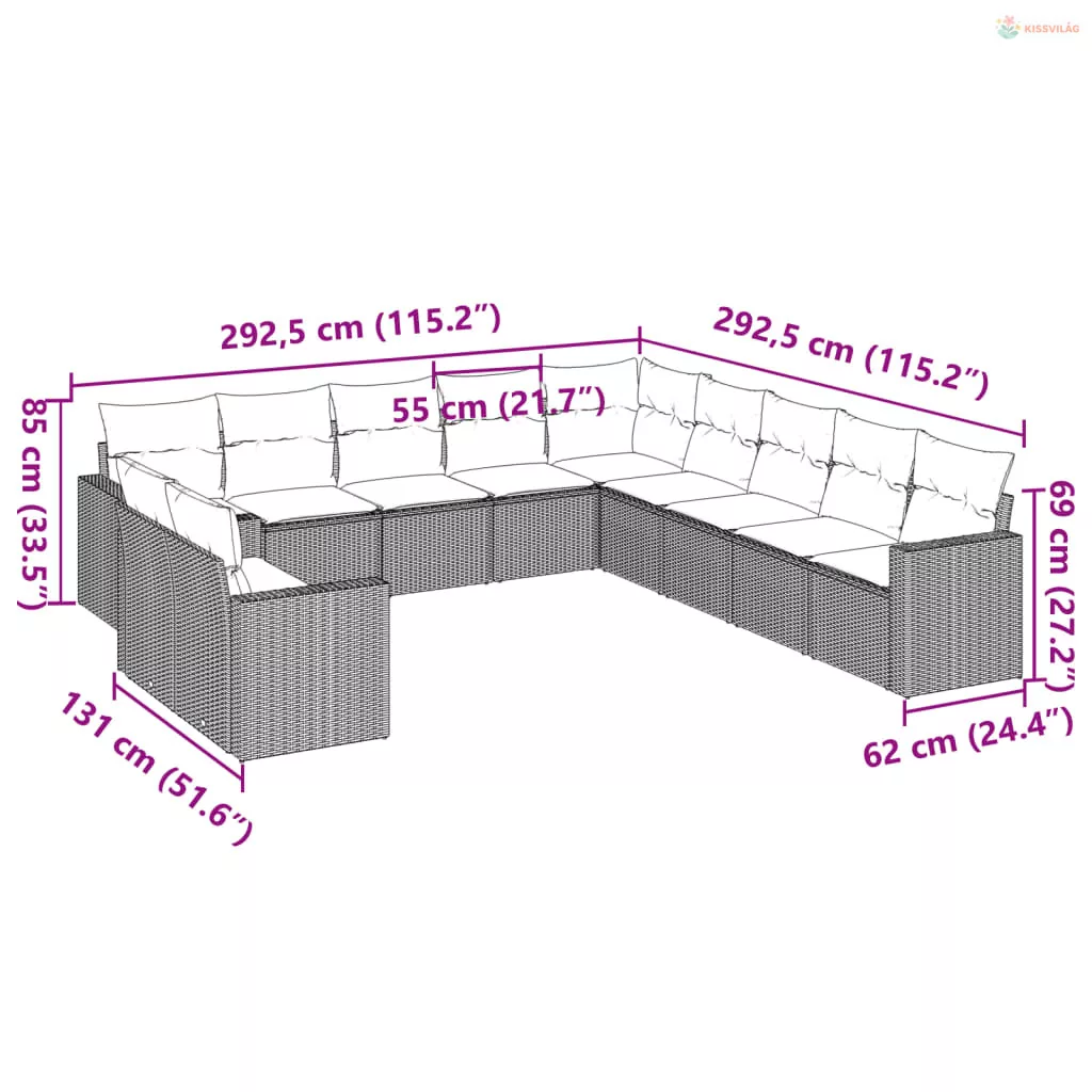 11 részes barna polyrattan kerti ülőgarnitúra párnákkal