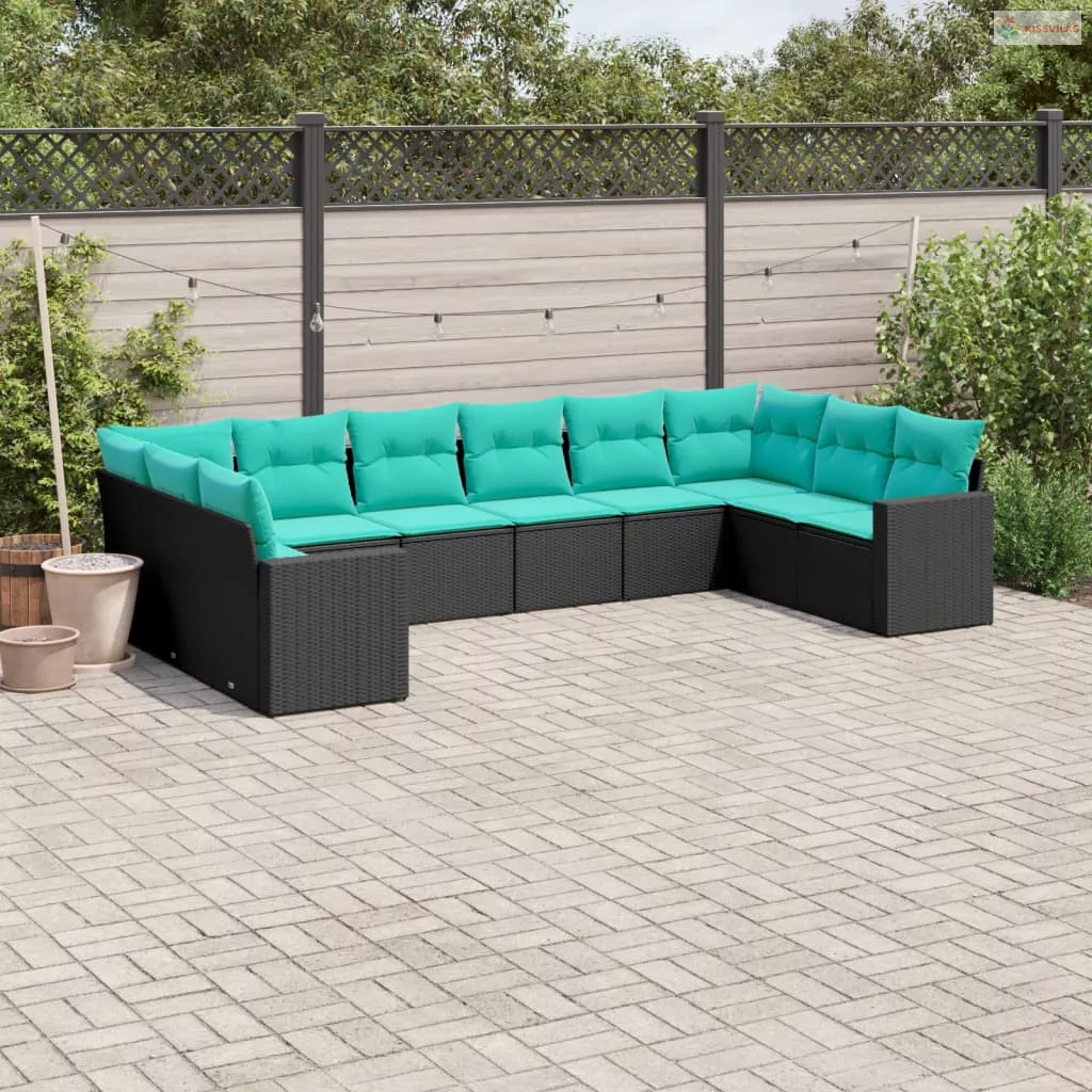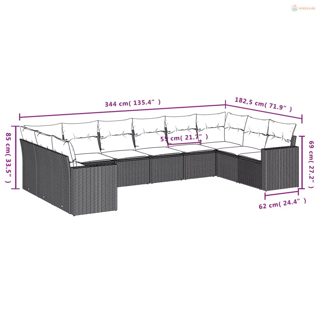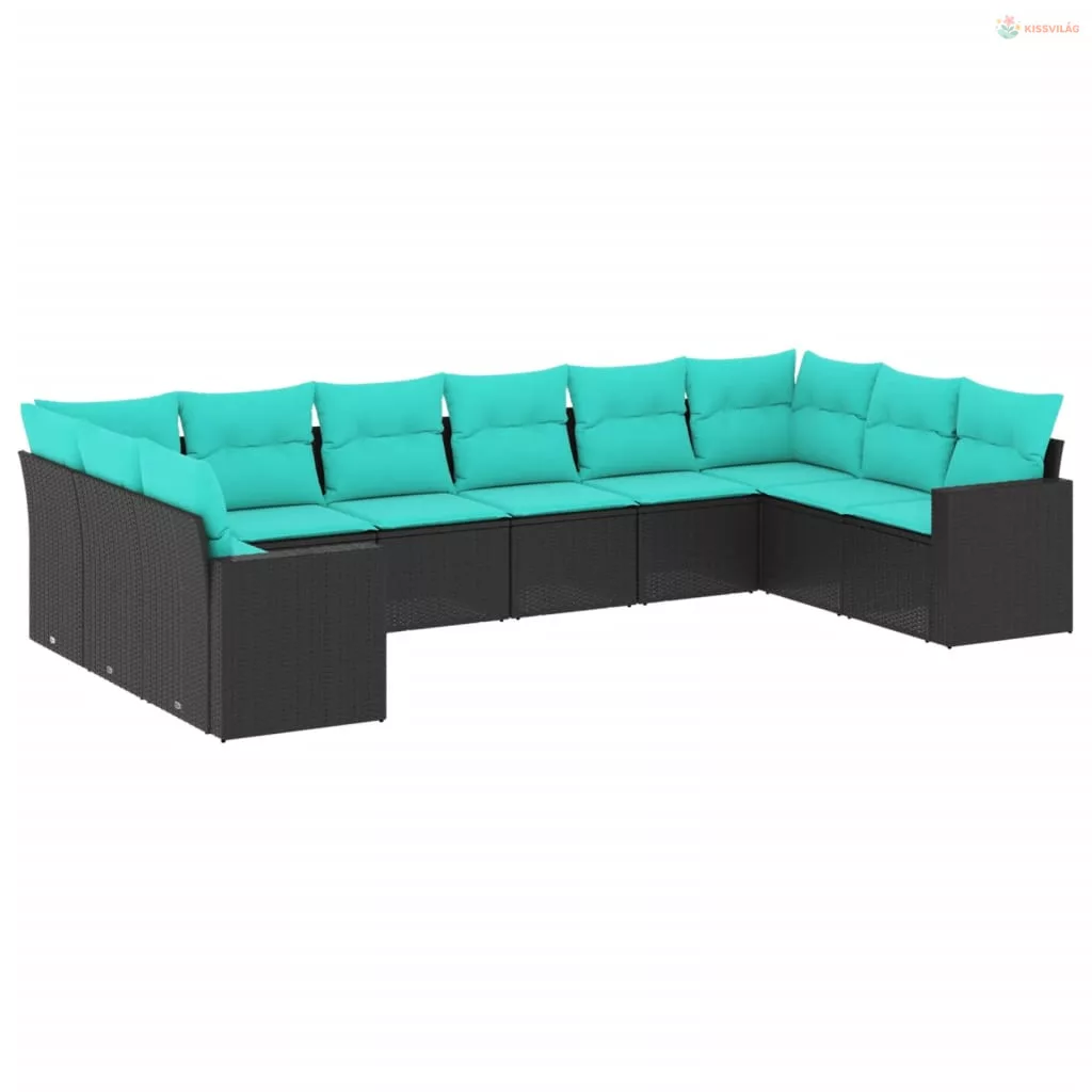 10 részes fekete polyrattan kerti ülőgarnitúra párnával
