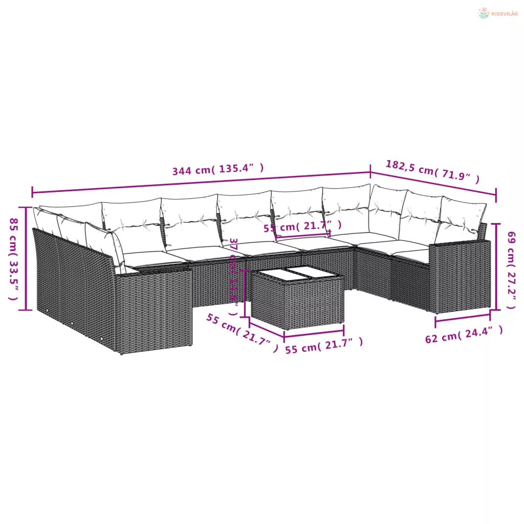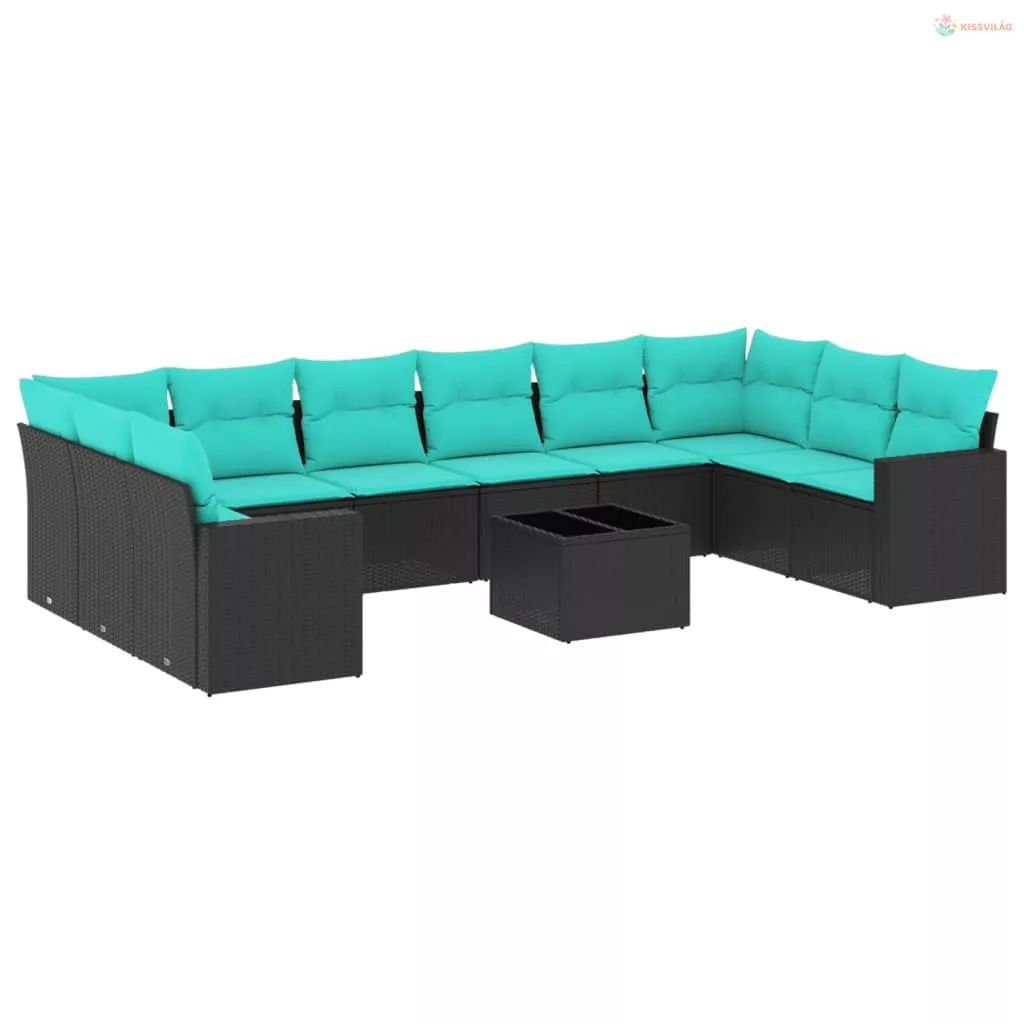 11 részes fekete polyrattan kerti ülőgarnitúra párnákkal