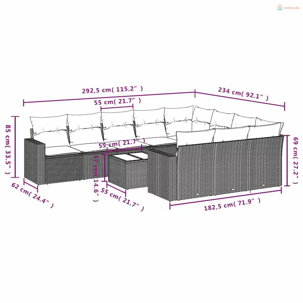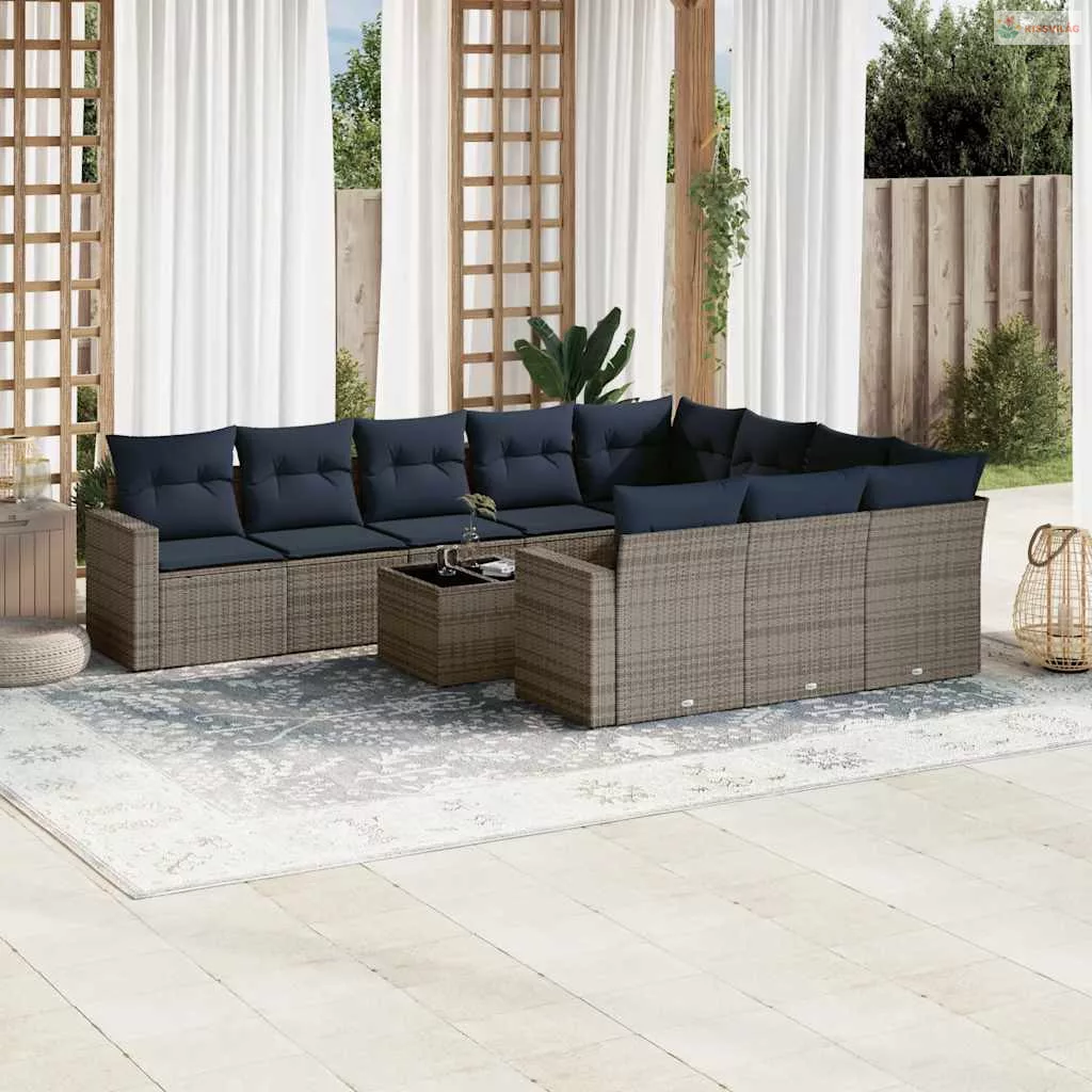 11 részes szürke polyrattan kerti ülőgarnitúra párnákkal