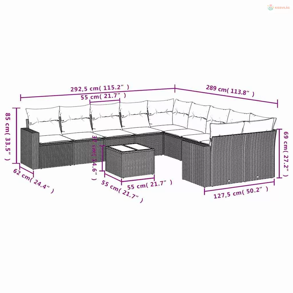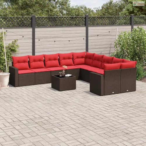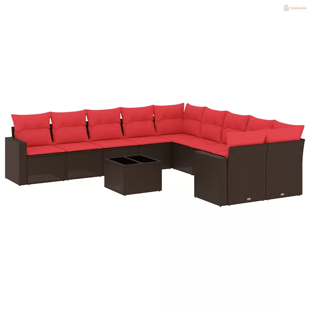 11 részes barna polyrattan kerti ülőgarnitúra párnákkal