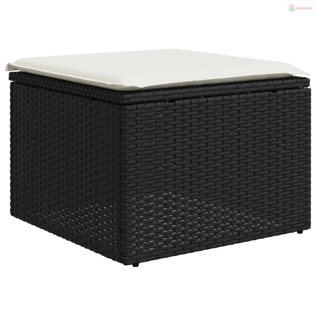 4 részes fekete polyrattan kerti ülőgarnitúra párnákkal