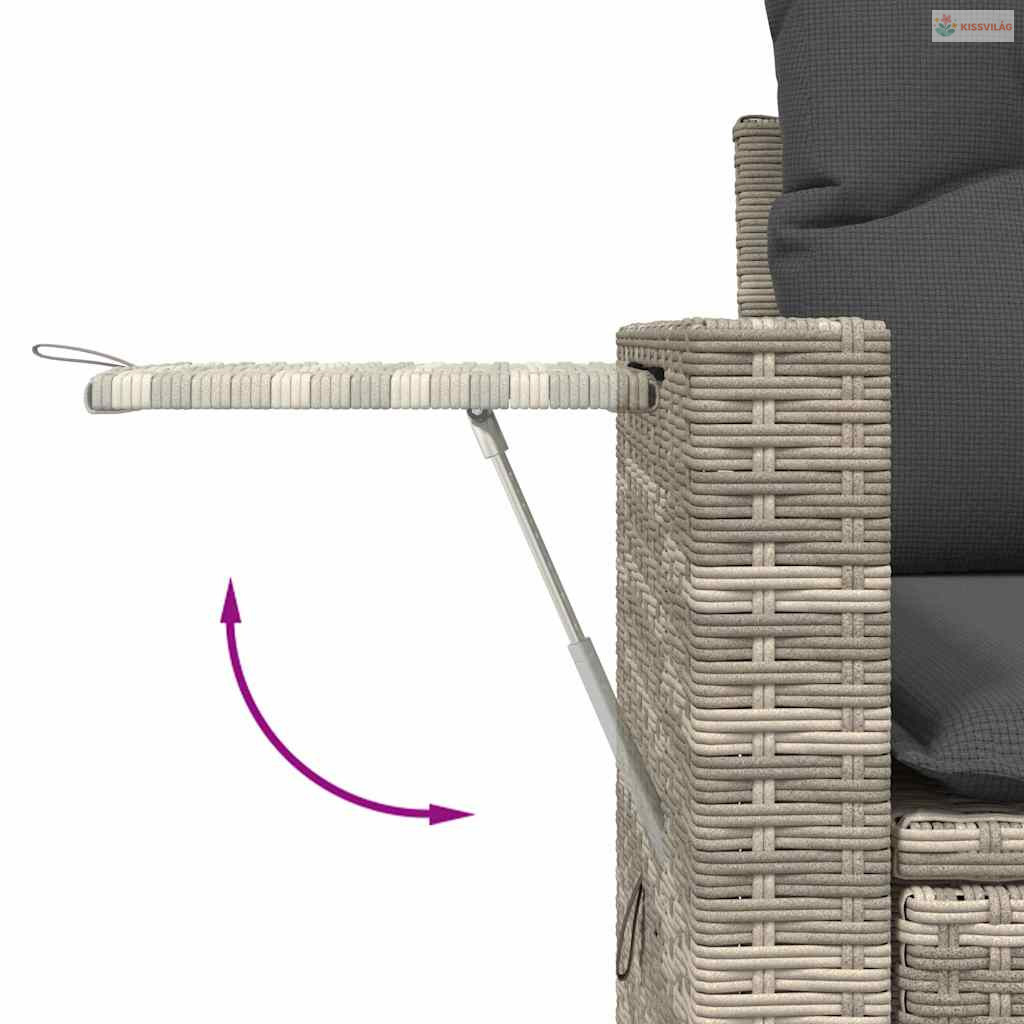 4 részes világosszürke polyrattan kerti ülőgarnitúra párnákkal