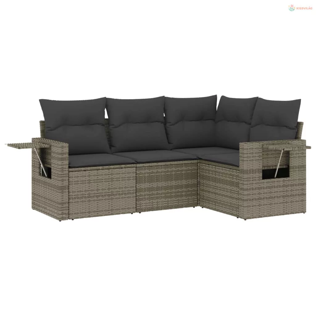 4 részes szürke polyrattan kerti ülőgarnitúra párnákkal