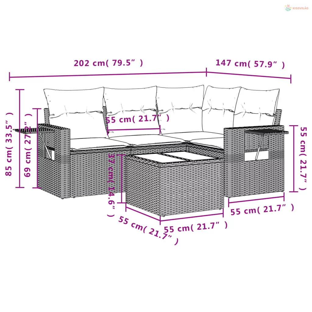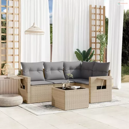 5 részes bézs polyrattan kerti ülőgarnitúra párnákkal