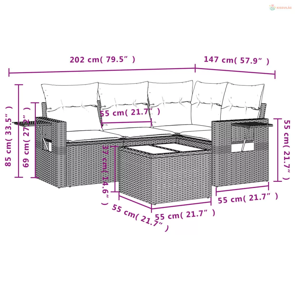 5 részes barna polyrattan kerti ülőgarnitúra párnával
