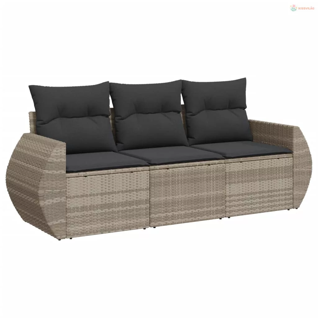 3 részes világosszürke polyrattan kerti ülőgarnitúra párnával