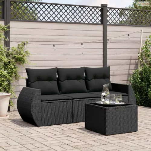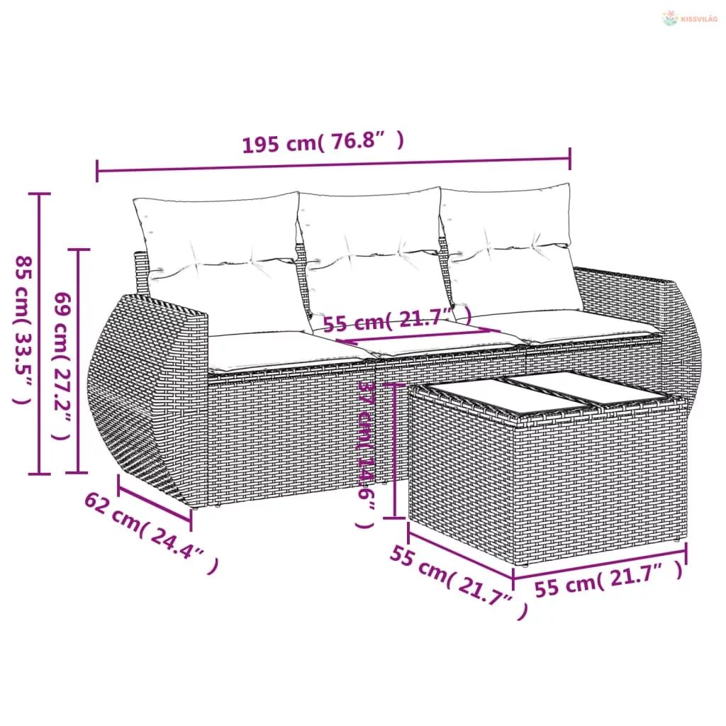4 részes fekete polyrattan kerti ülőgarnitúra párnákkal