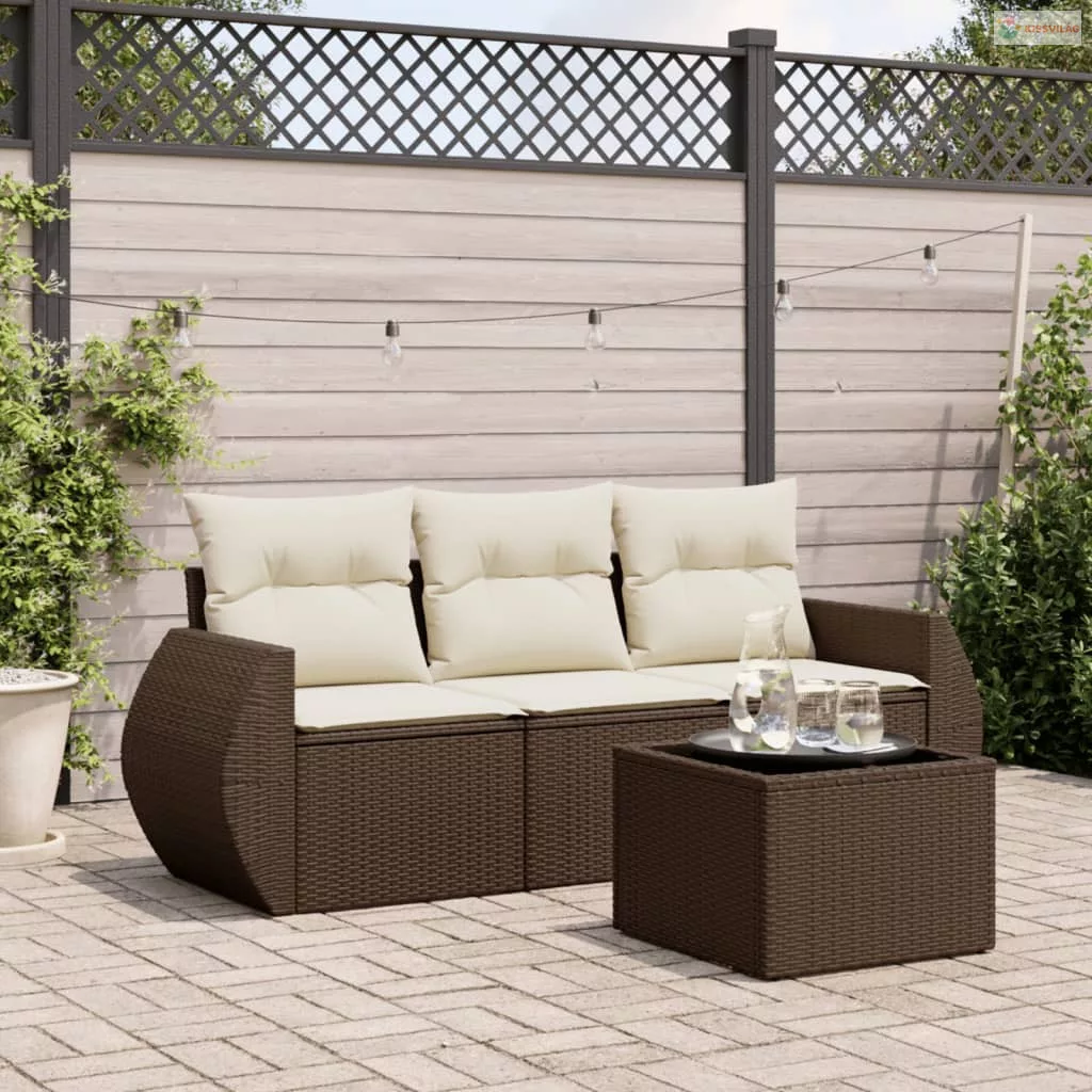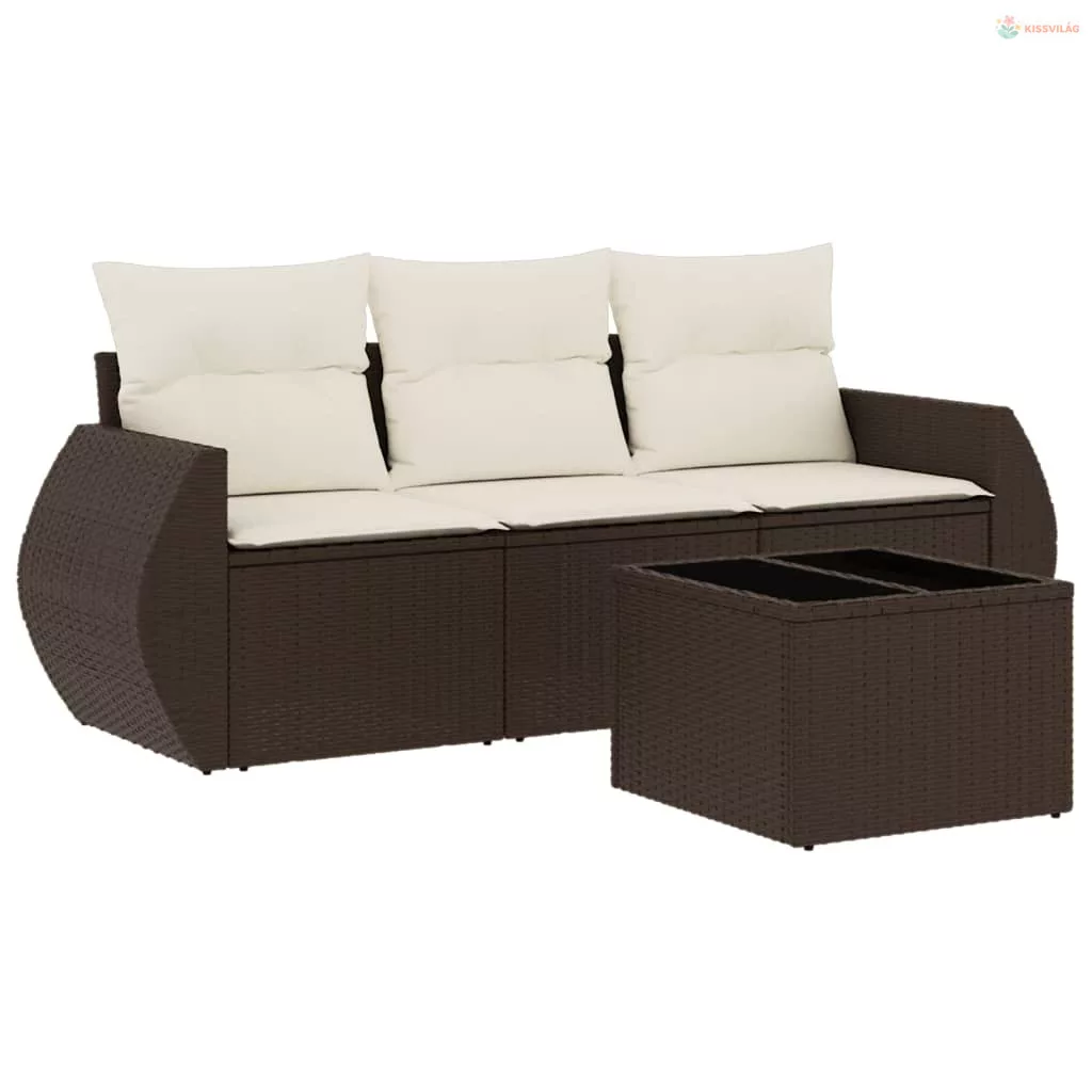 4 részes barna polyrattan kerti ülőgarnitúra párnákkal