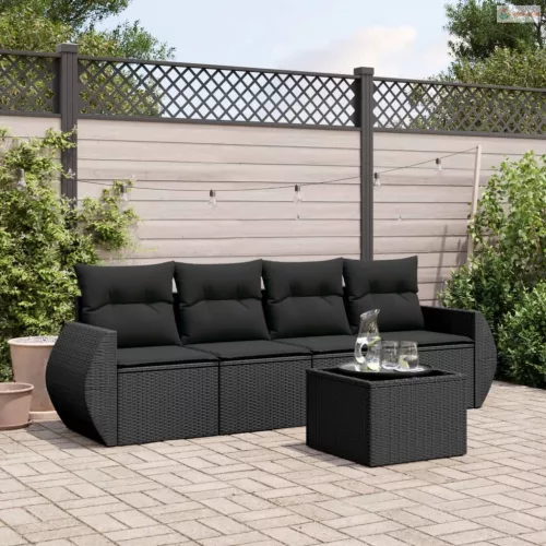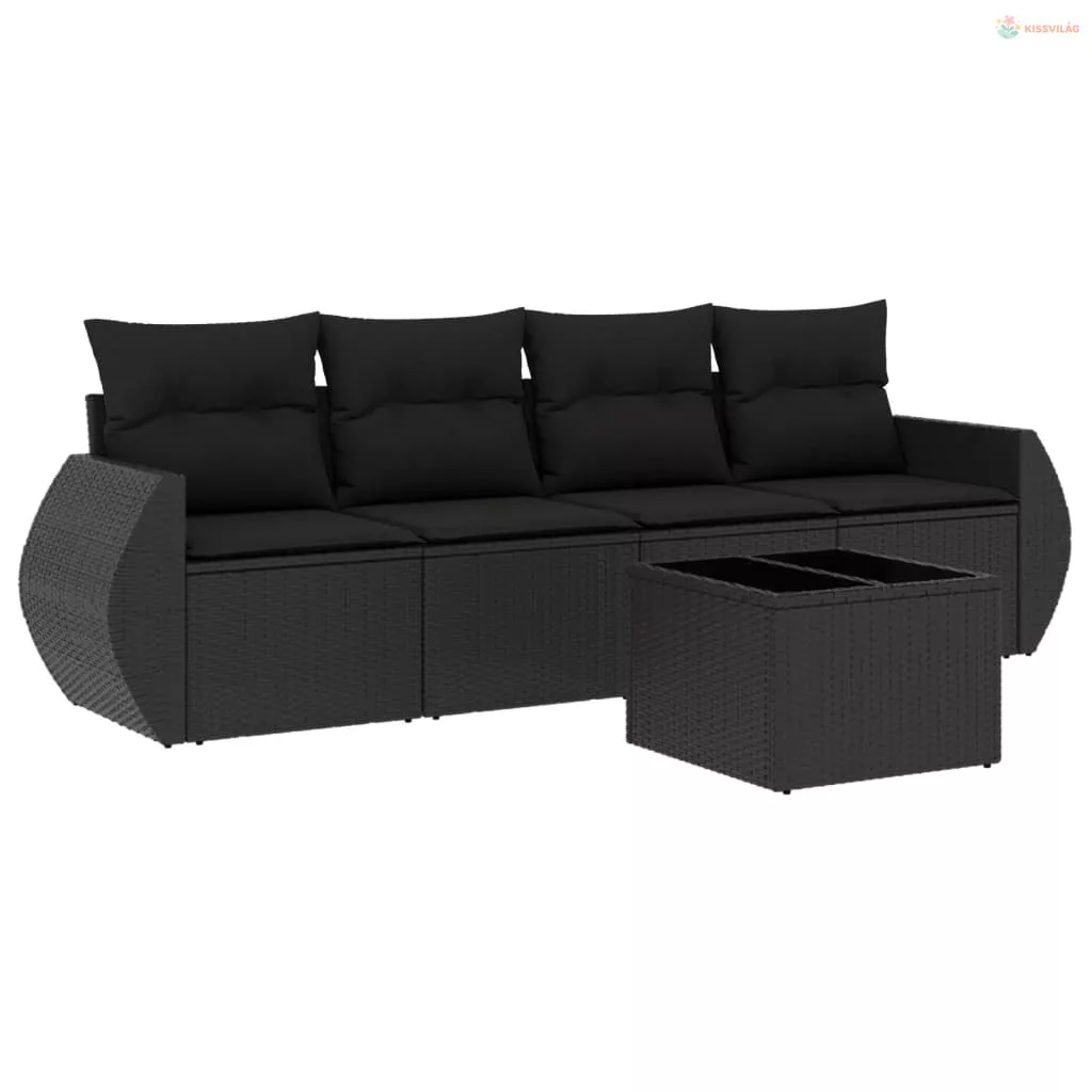 5 részes fekete polyrattan kerti kanapészett párnákkal