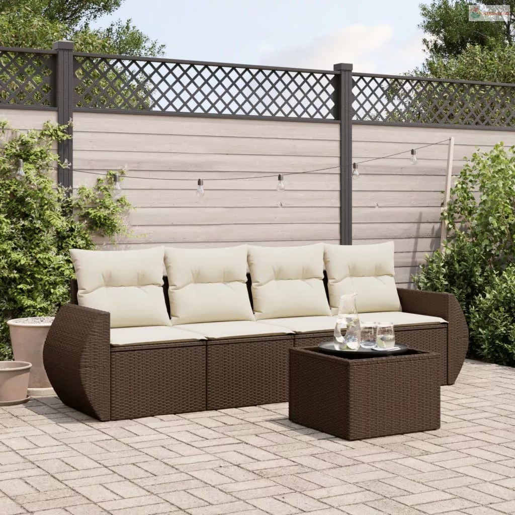 5 részes barna polyrattan kerti ülőgarnitúra párnával