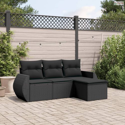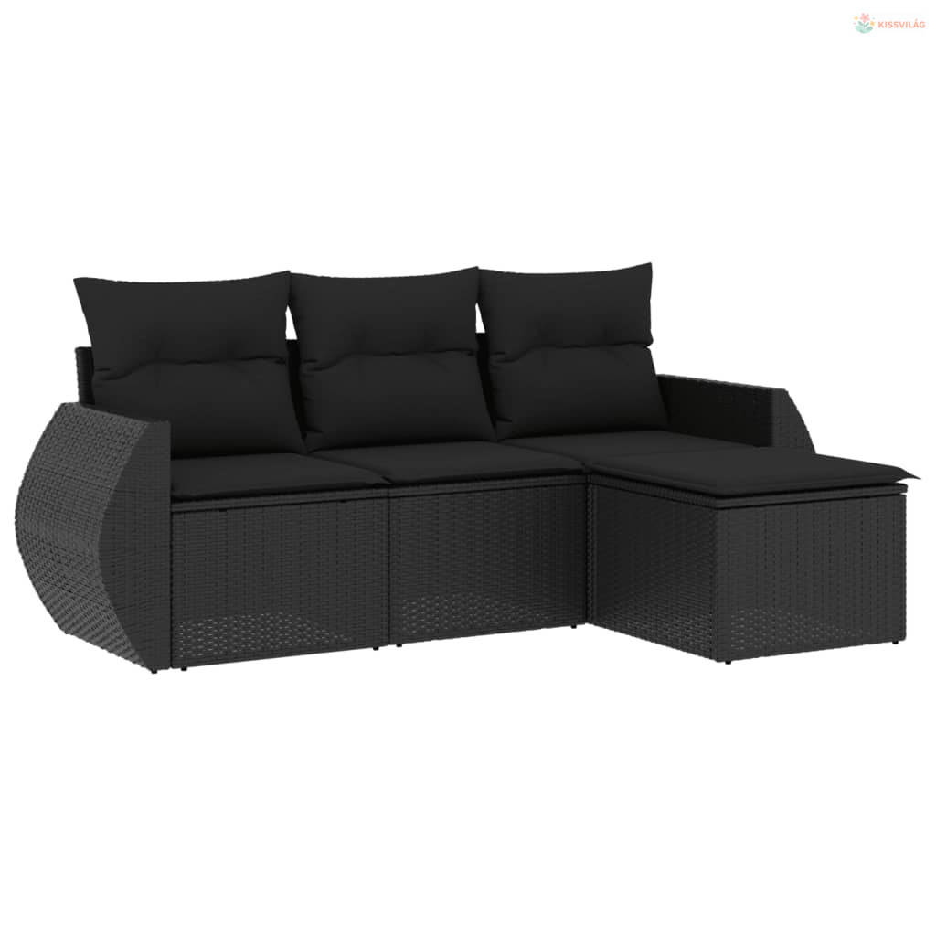 4 részes fekete polyrattan kerti ülőgarnitúra párnákkal