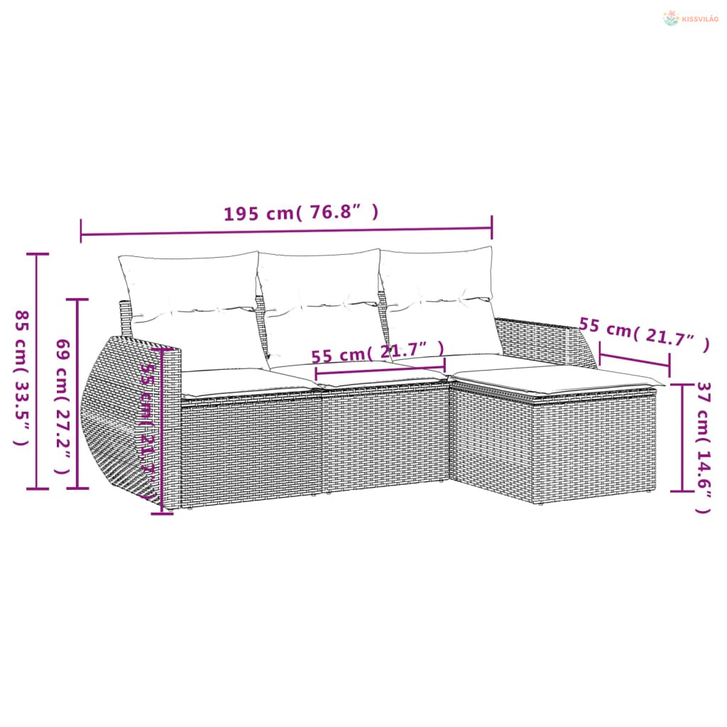 4 részes barna polyrattan kerti ülőgarnitúra párnákkal