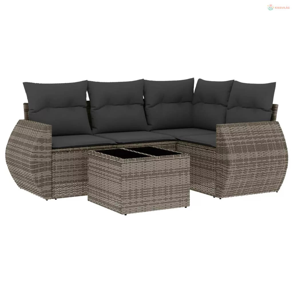 5 részes szürke polyrattan kerti ülőgarnitúra párnákkal