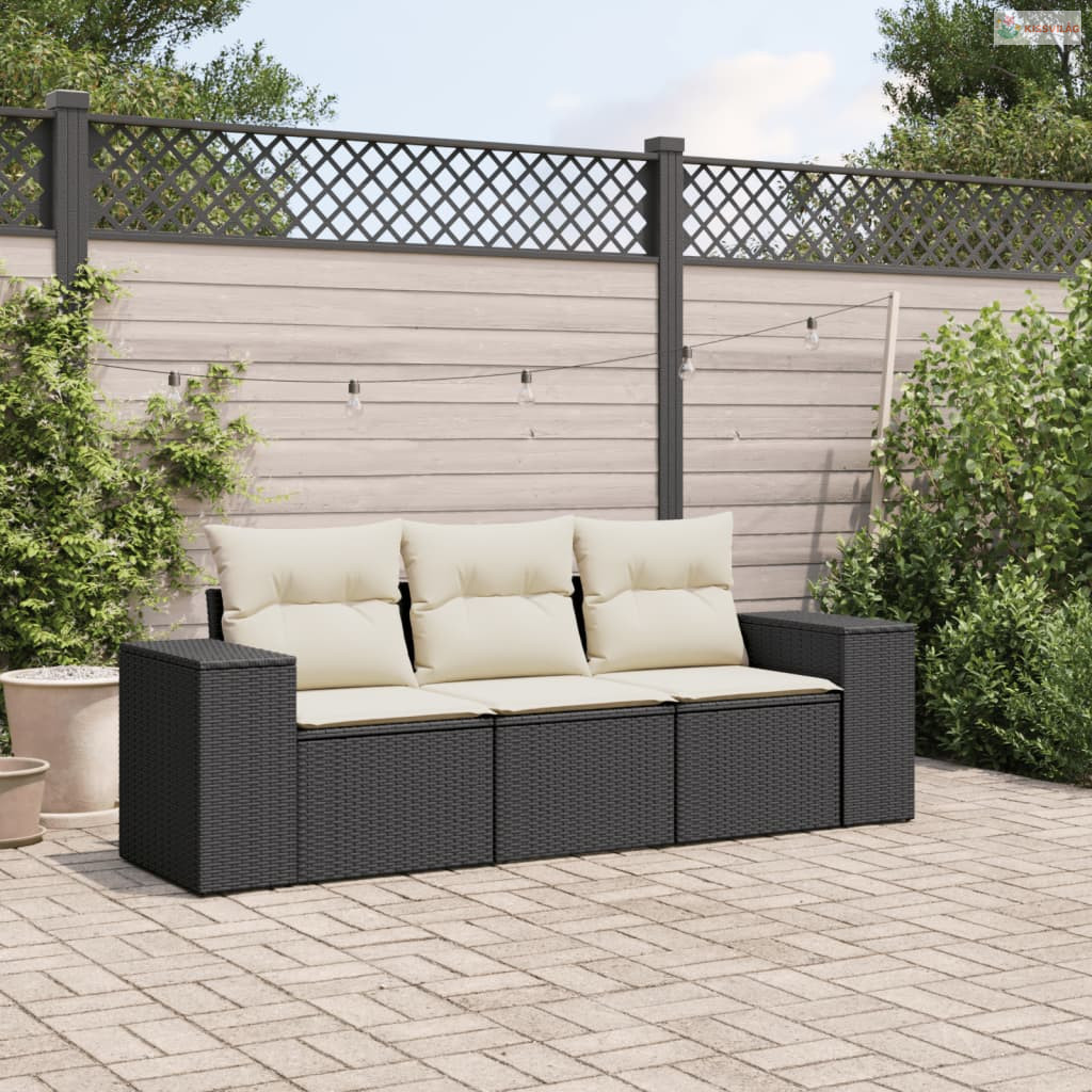 3 részes fekete polyrattan kerti ülőgarnitúra párnával