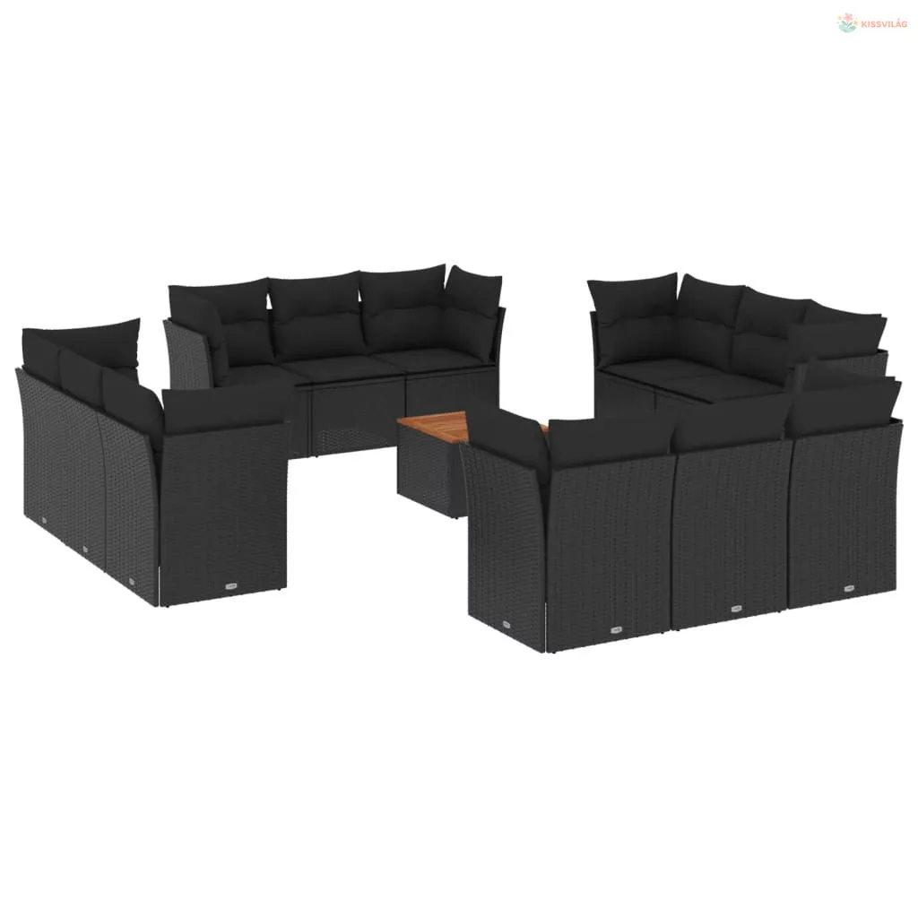 13 részes fekete polyrattan kerti ülőgarnitúra párnákkal