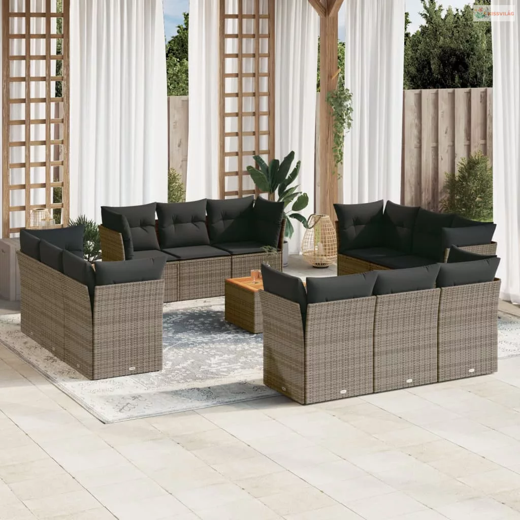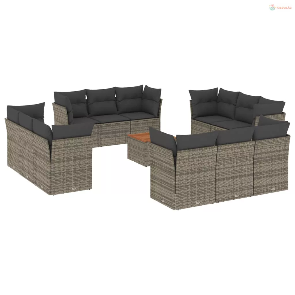 13 részes szürke polyrattan kerti ülőgarnitúra párnákkal