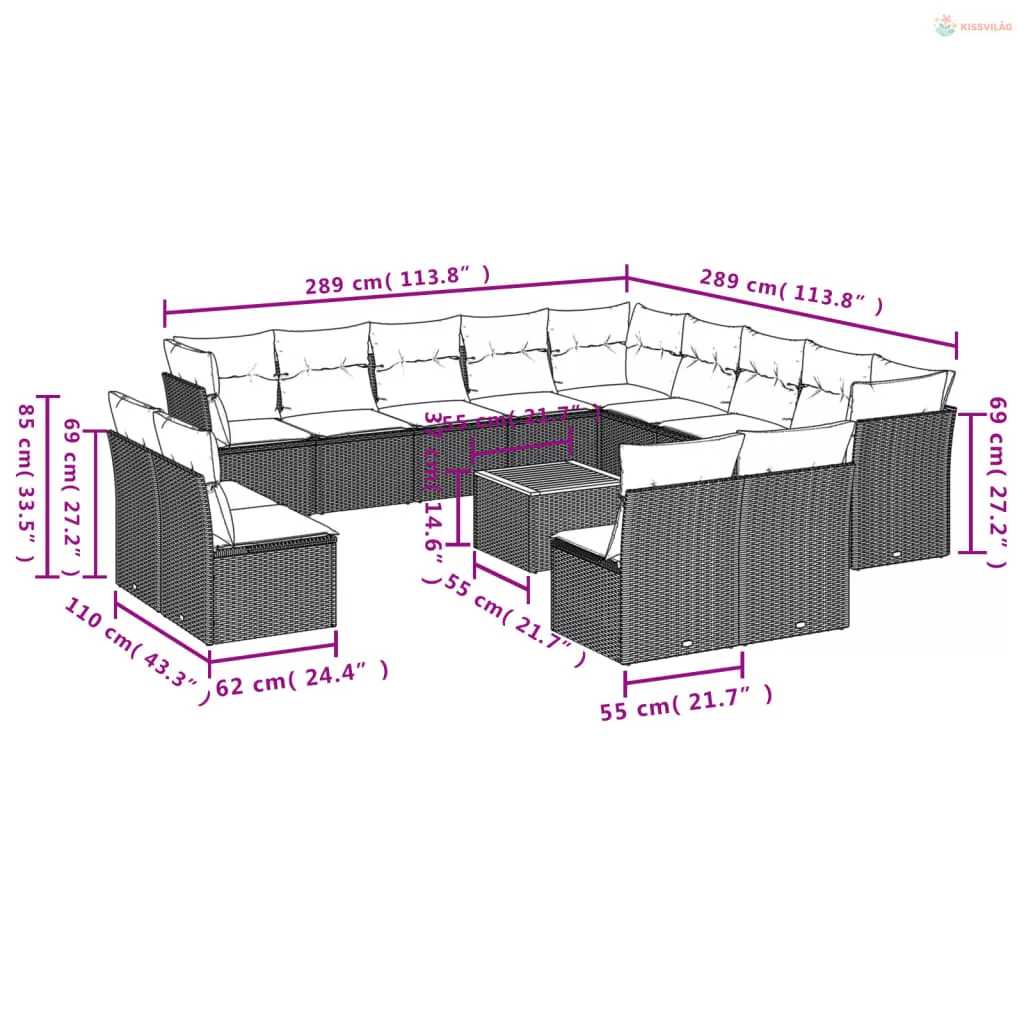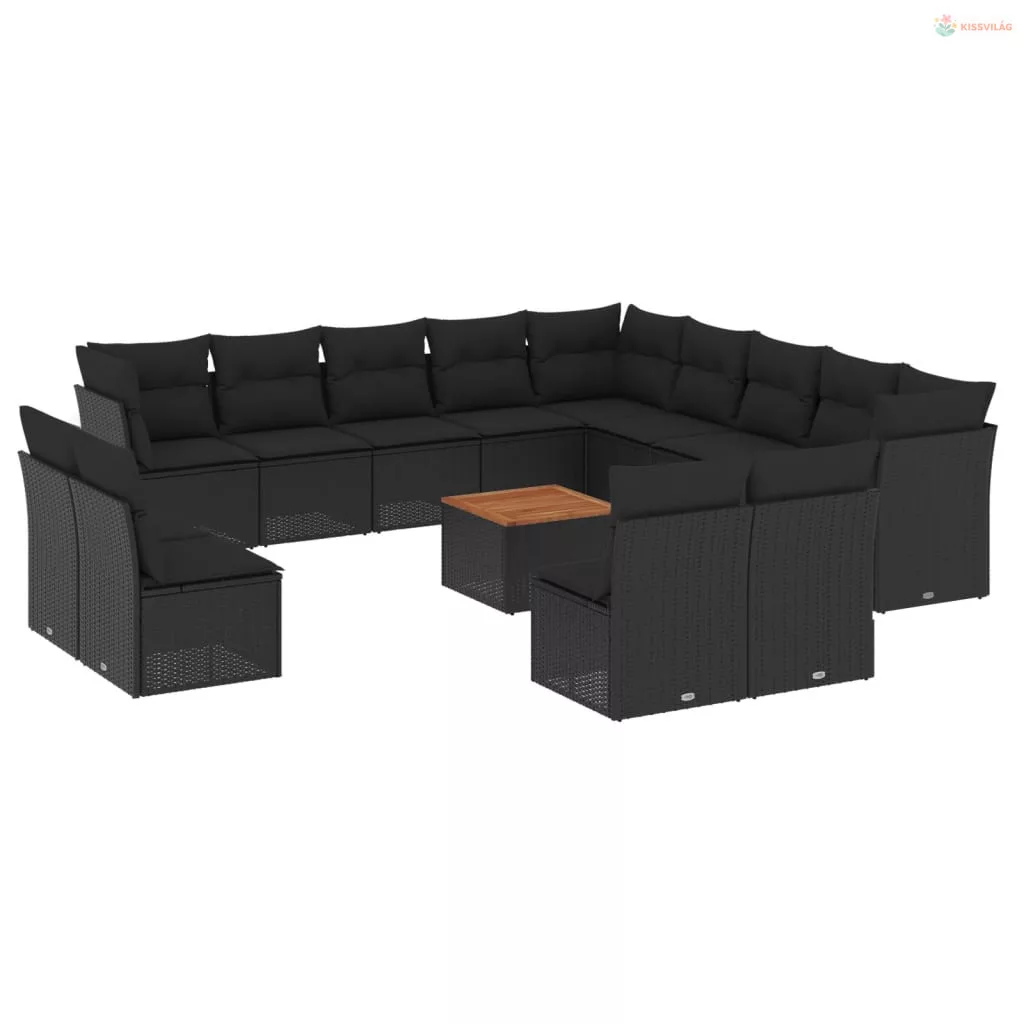 14 részes fekete polyrattan kerti ülőgarnitúra párnákkal