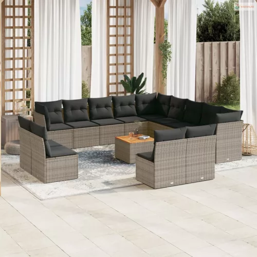 14 részes szürke polyrattan kerti ülőgarnitúra párnákkal