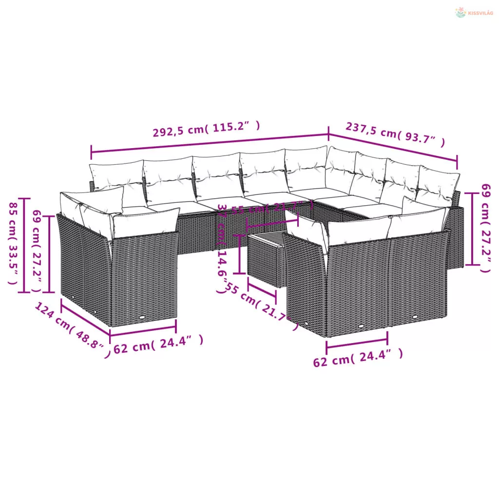 13 részes szürke polyrattan kerti ülőgarnitúra párnákkal