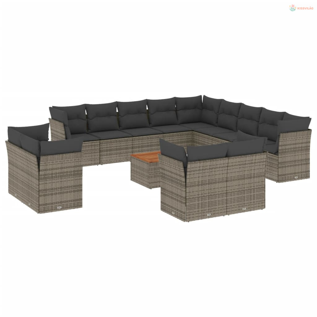 14 részes szürke polyrattan kerti ülőgarnitúra párnákkal