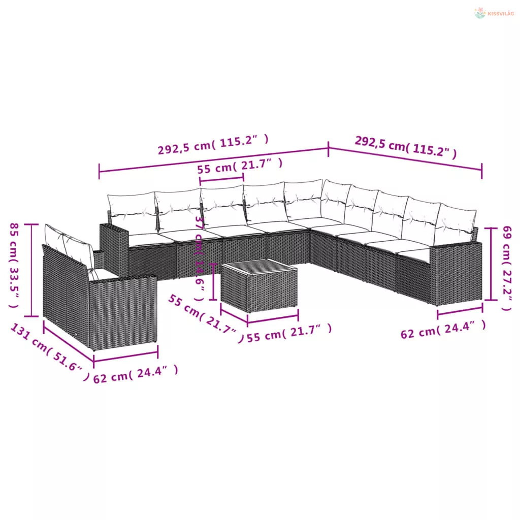 12 részes szürke polyrattan kerti ülőgarnitúra párnákkal