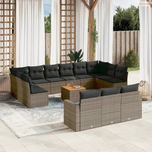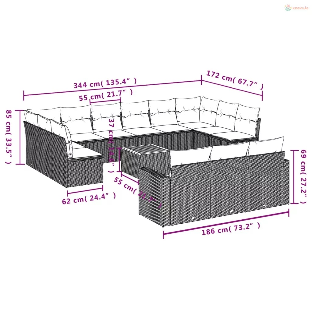 14 részes szürke polyrattan kerti ülőgarnitúra párnákkal