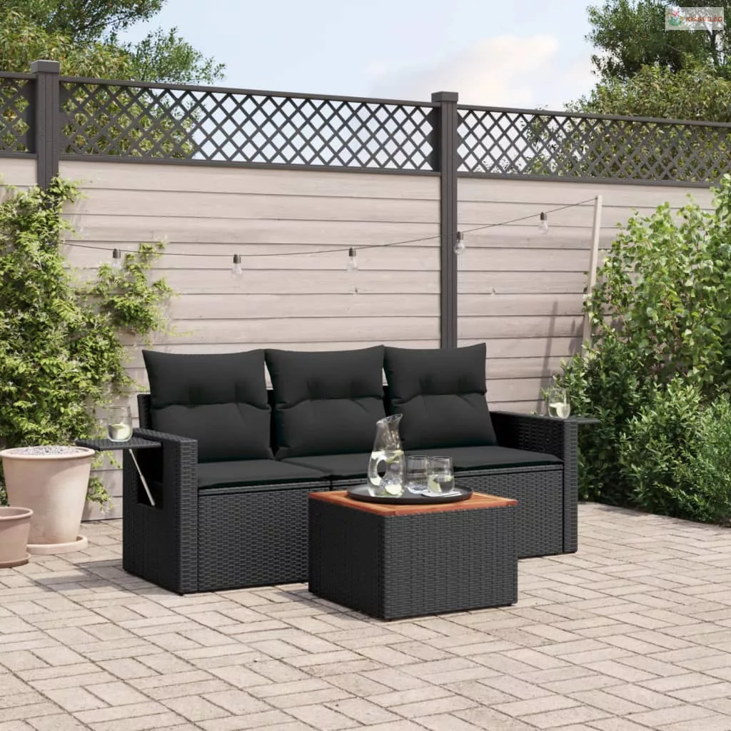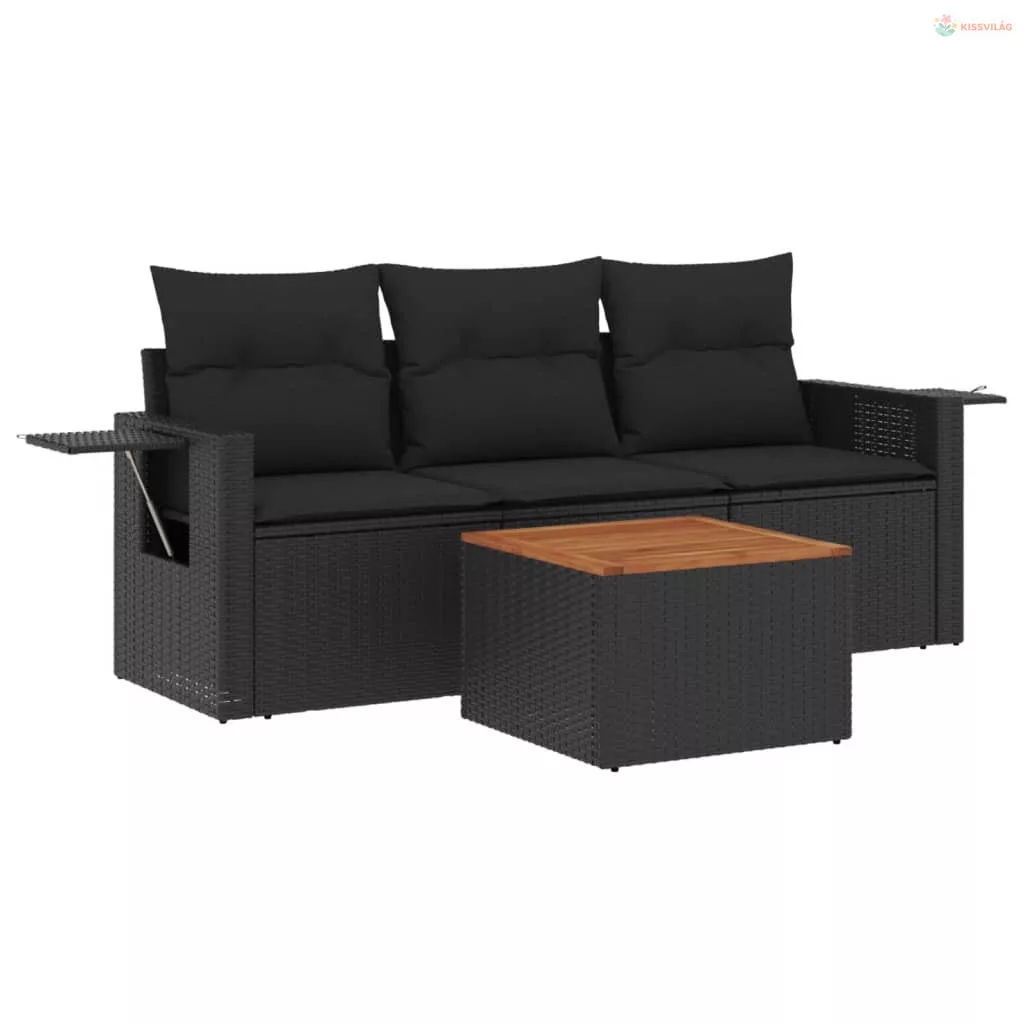 4 részes fekete polyrattan kerti ülőgarnitúra párnákkal