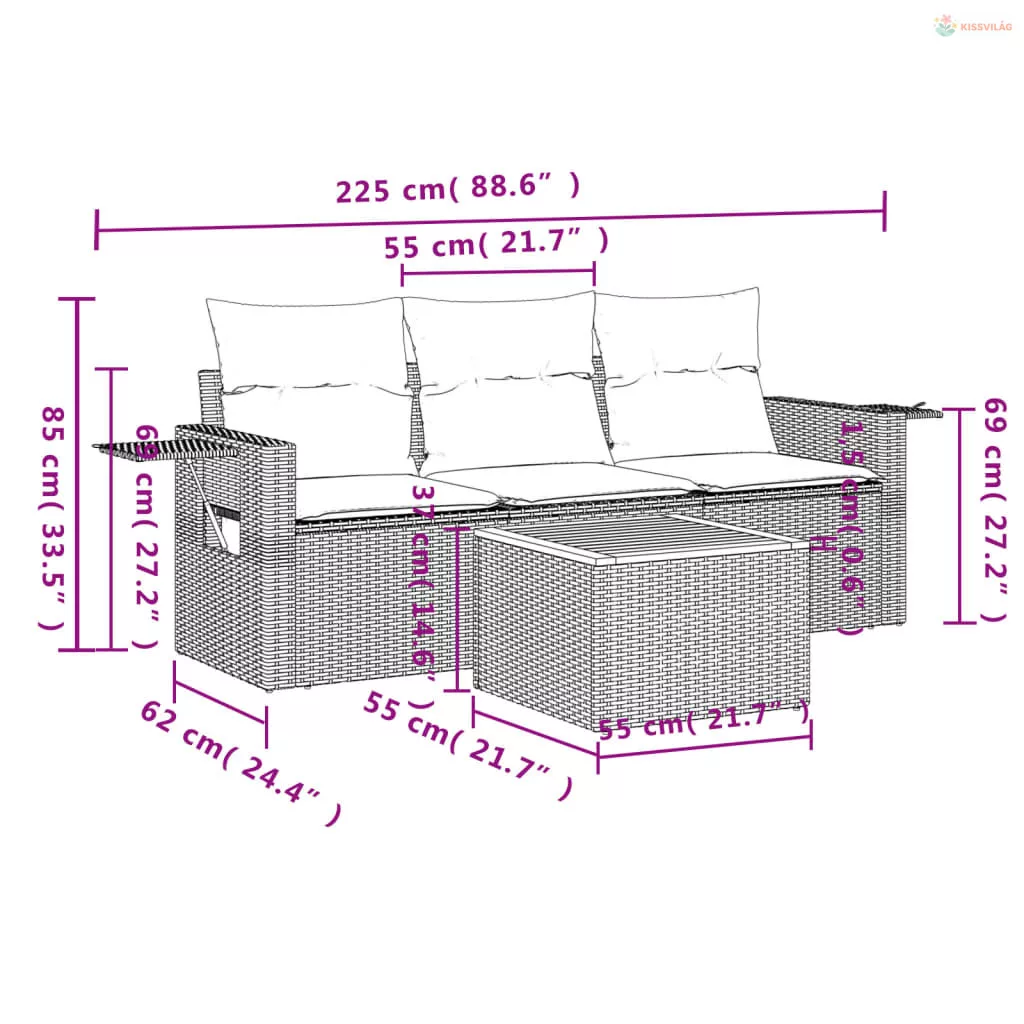 Ez a kerti ülőgarnitúra tökéletes kiegészítője lesz kertjének, teraszának vagy udvarának, kényelmes és hívogató teret biztosítva a családdal és a barátokkal való beszélgetéshez, vagy egyszerűen csak pihenéshez a szabadban.