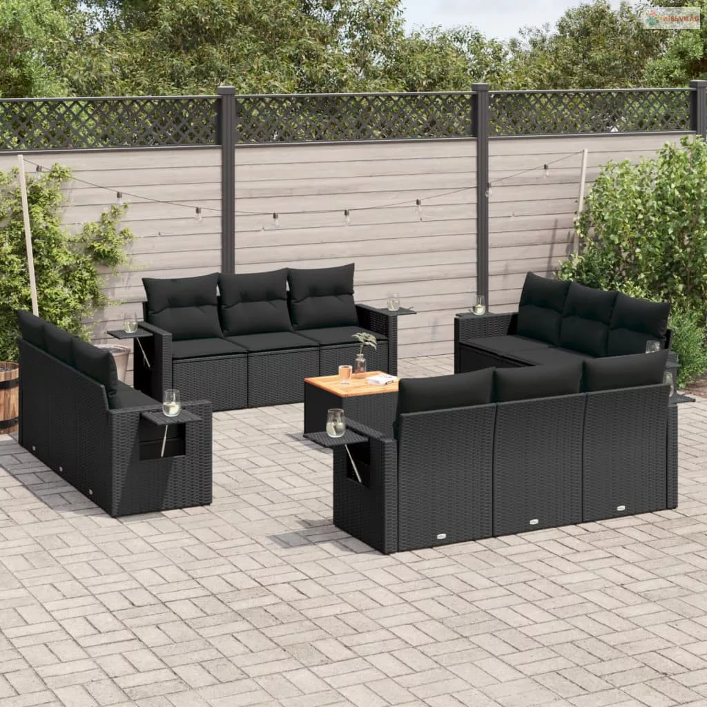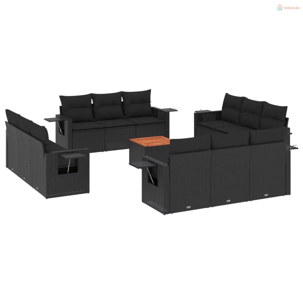 13 részes fekete polyrattan kerti ülőgarnitúra párnákkal