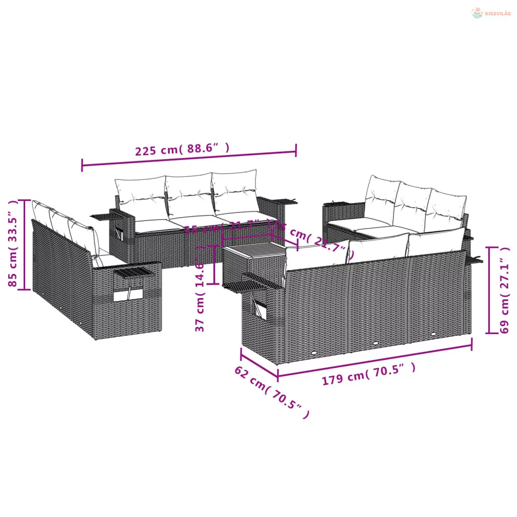 13 részes bézs polyrattan kerti ülőgarnitúra párnákkal