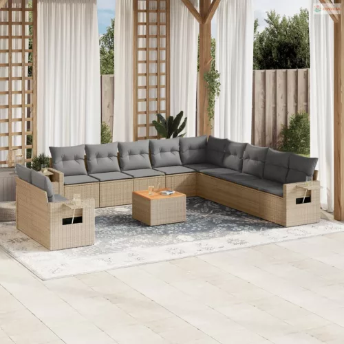 12 részes bézs polyrattan kerti ülőgarnitúra párnákkal