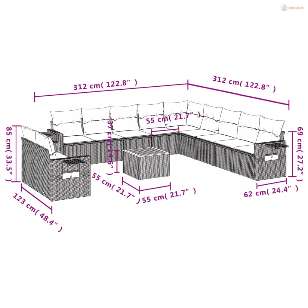 • Moduláris kialakítás: Ez a kerti bútorkészlet moduláris felépítésű, így teljesen rugalmas és könnyen mozgatható, így személyre szabott kerti bútor-elrendezést alakíthat ki.