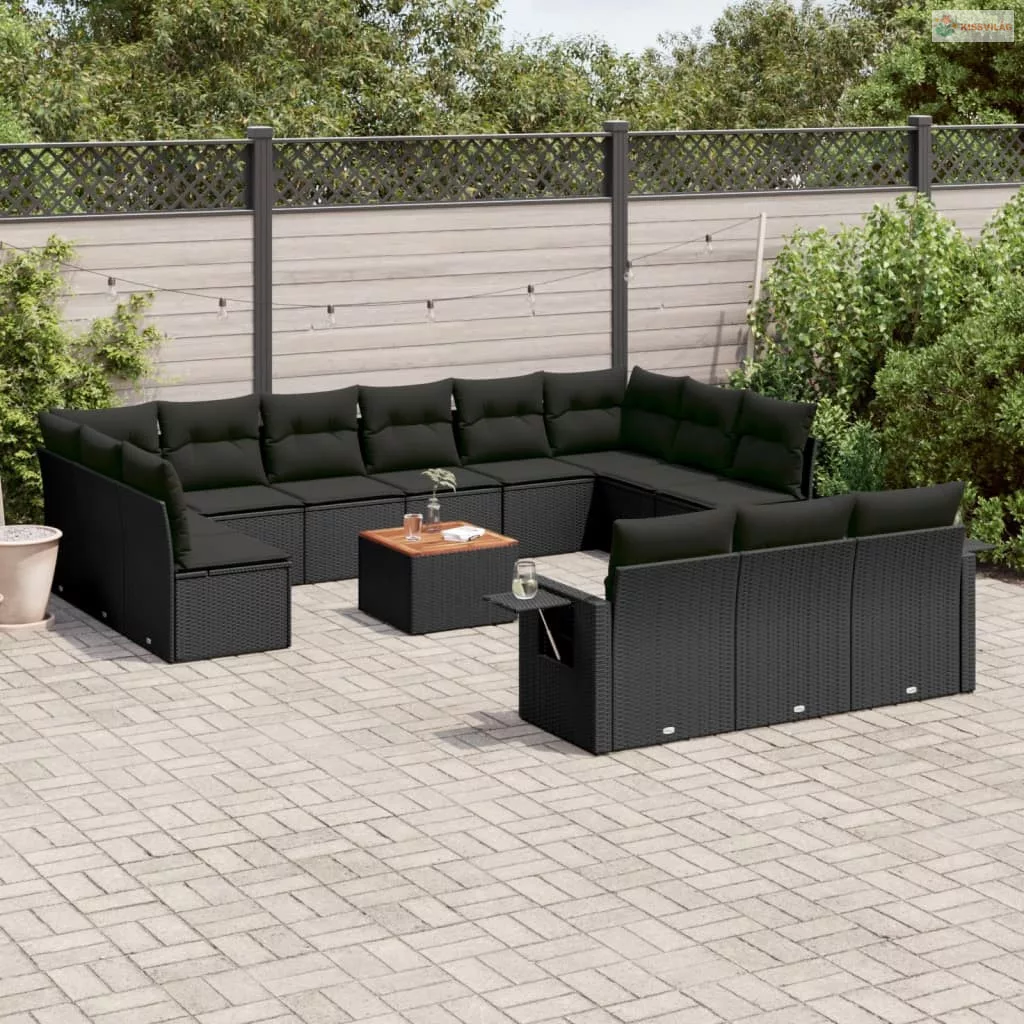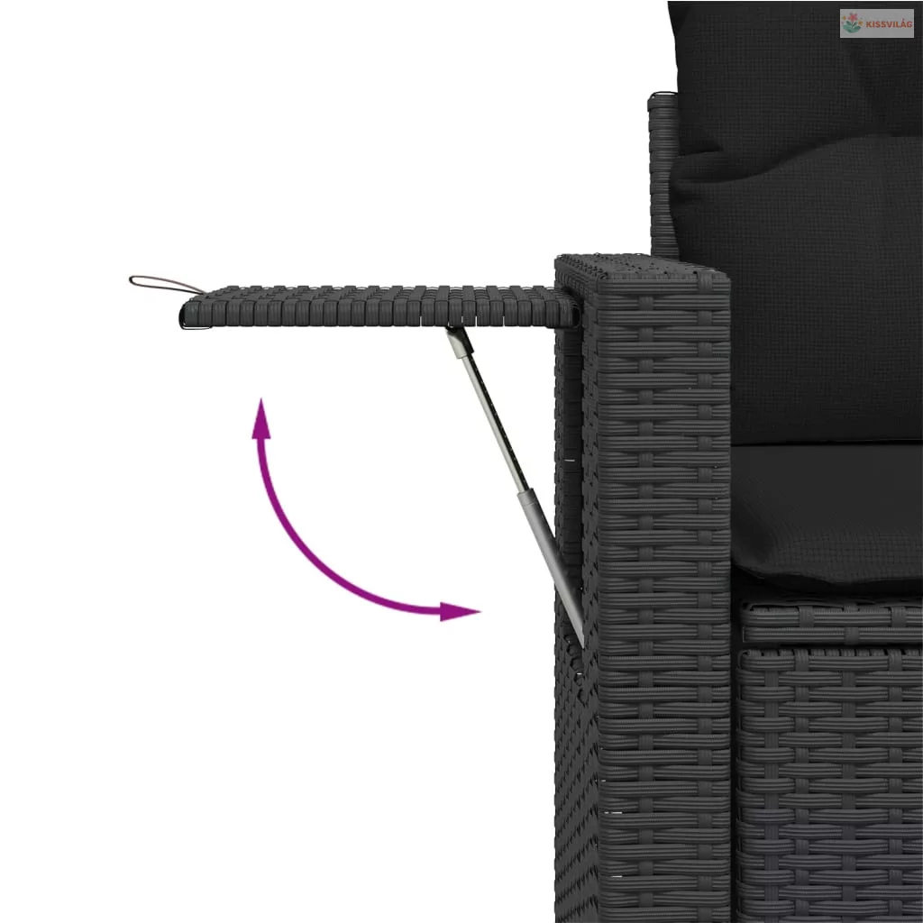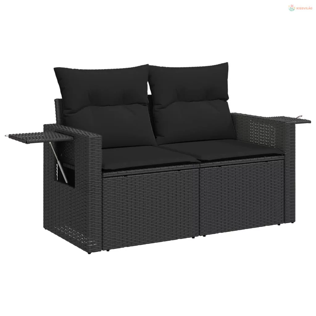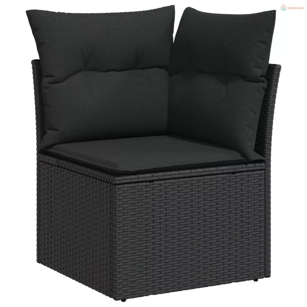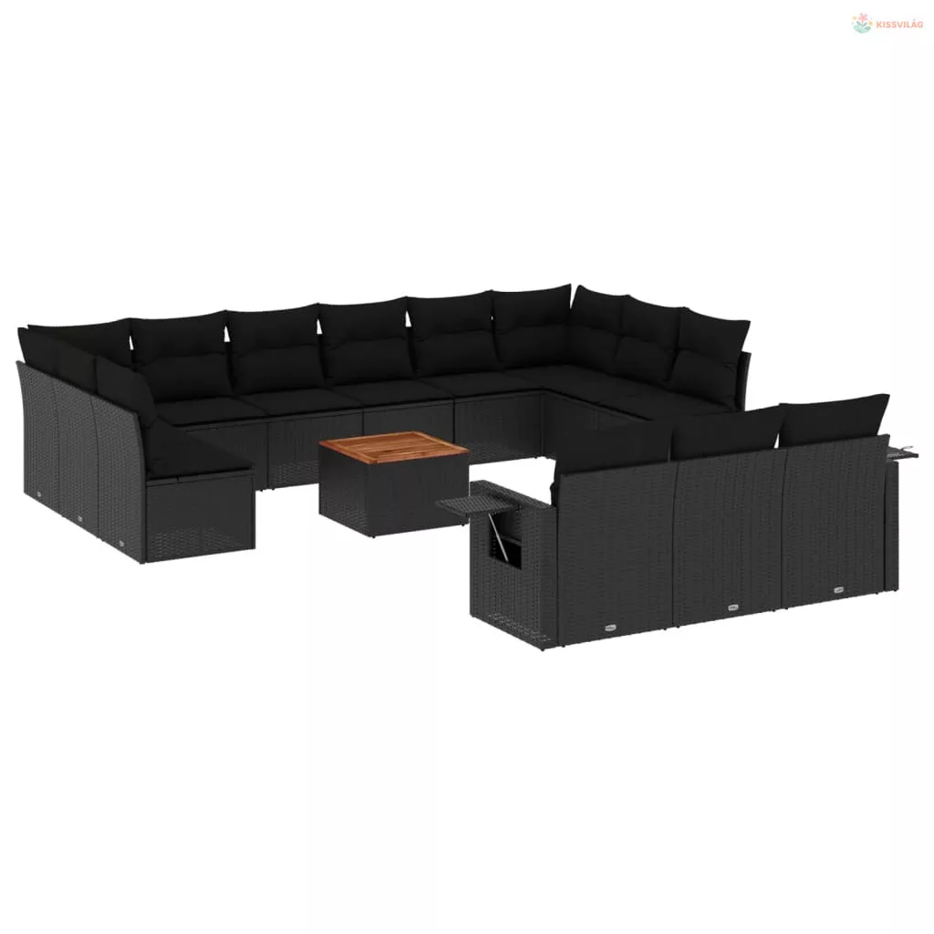 14 részes fekete polyrattan kerti ülőgarnitúra párnákkal