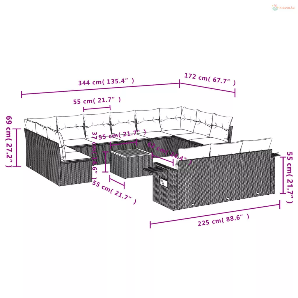 • Ülőpárna mérete: 55 x 55 x 3 cm (Szé x Mé x Va)