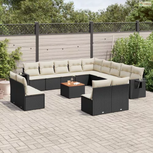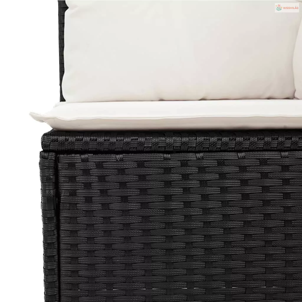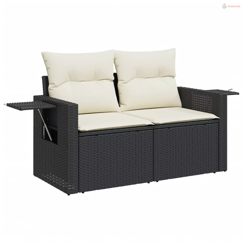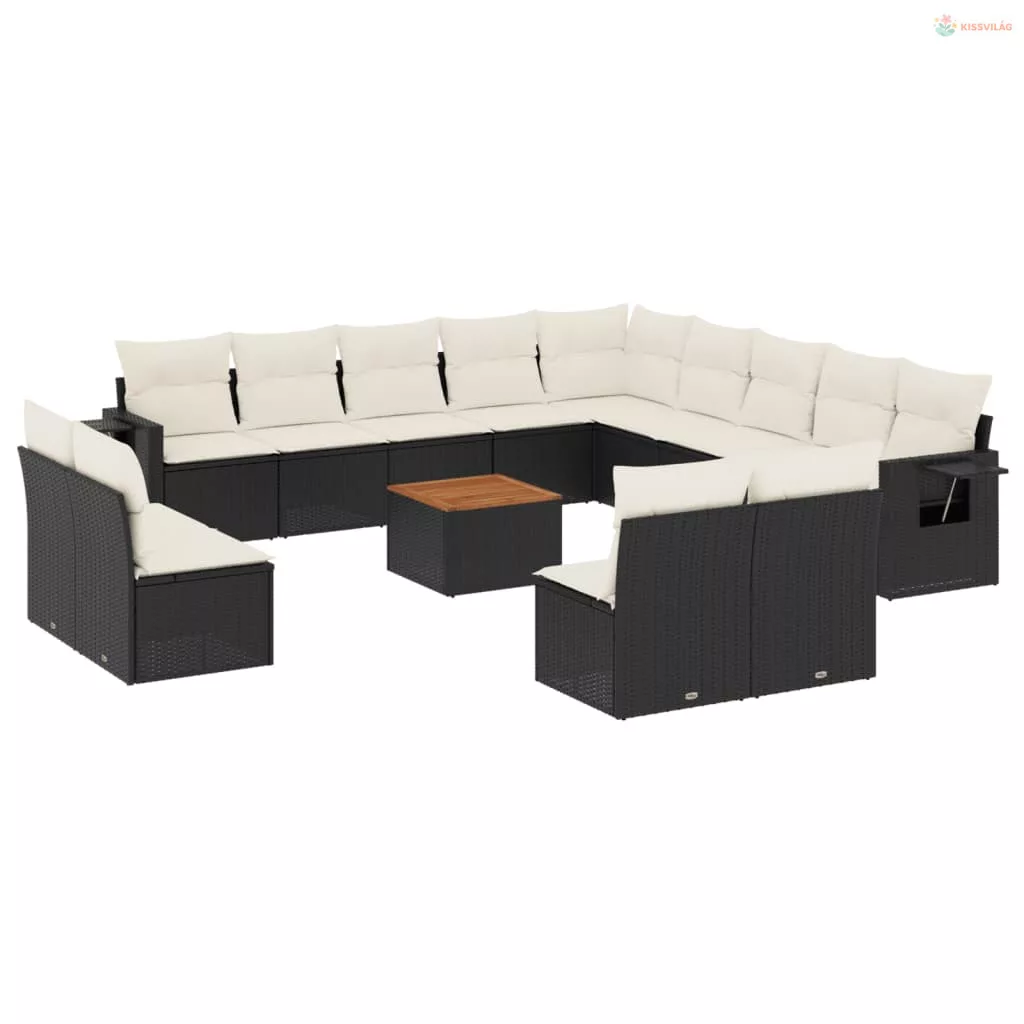 14 részes fekete polyrattan kerti ülőgarnitúra párnákkal