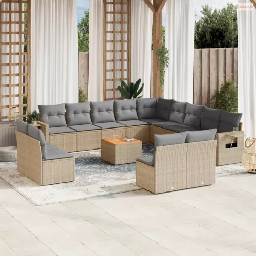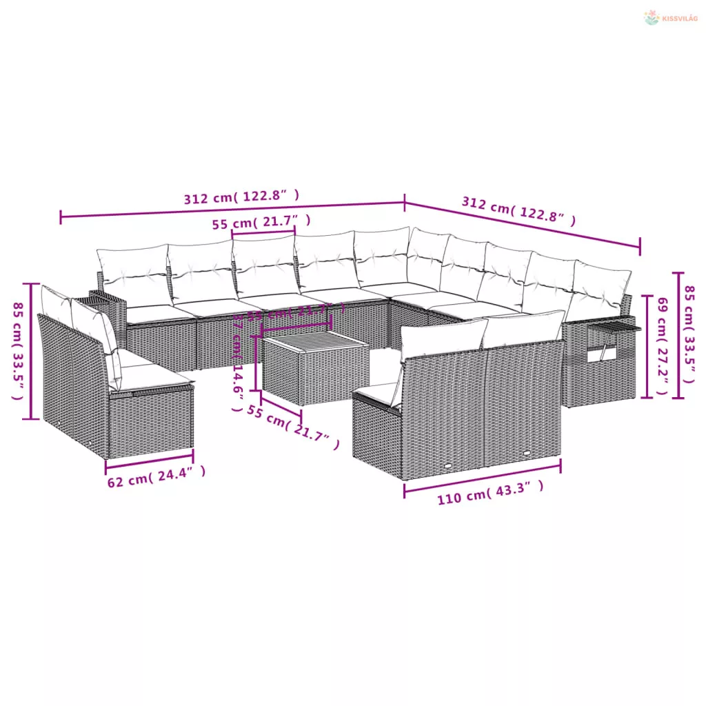14 részes bézs polyrattan kerti ülőgarnitúra párnával