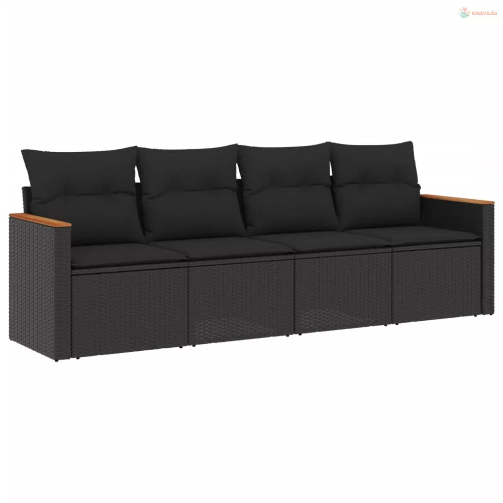4 részes fekete polyrattan kerti ülőgarnitúra párnákkal