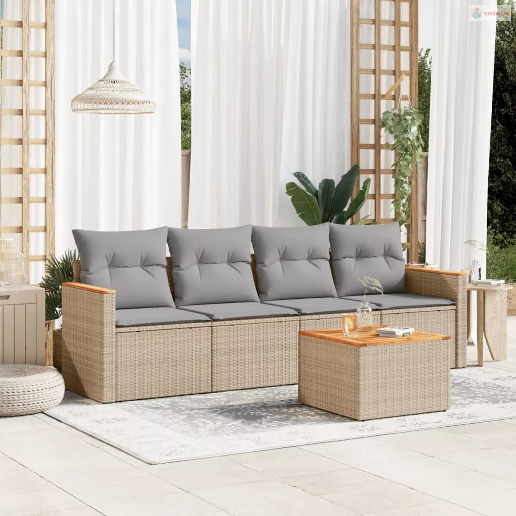 5 részes vegyes bézs polyrattan kerti ülőgarnitúra párnákkal