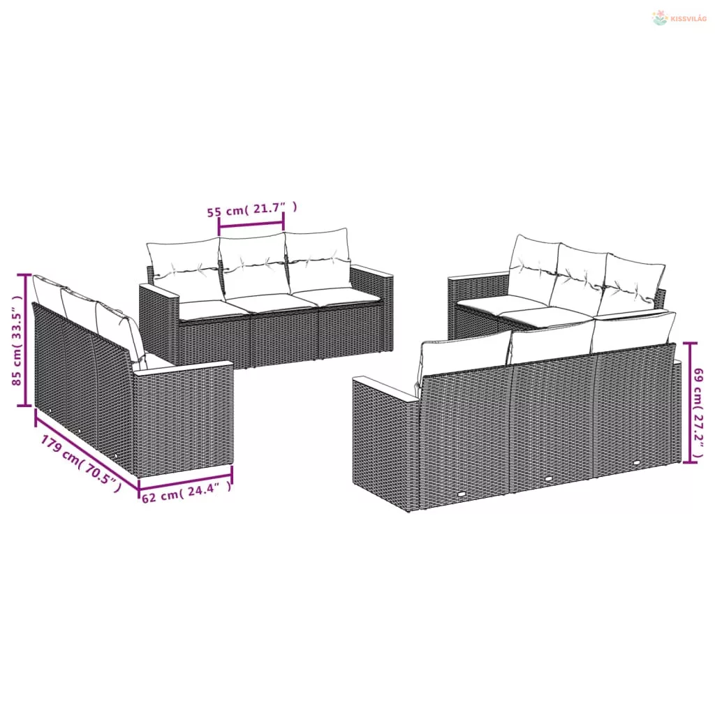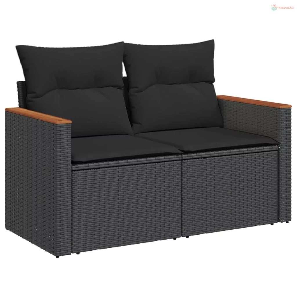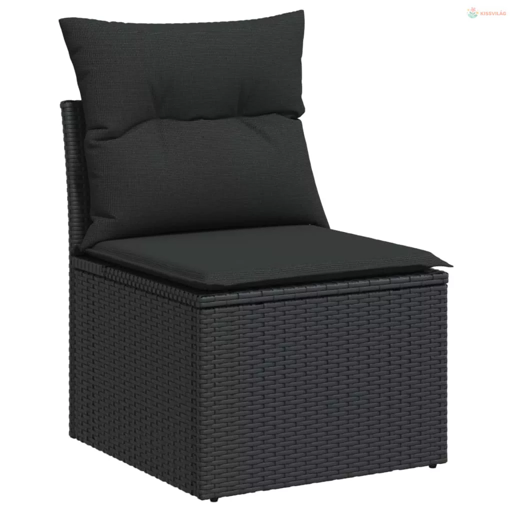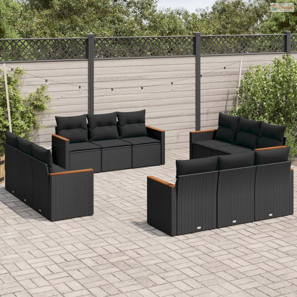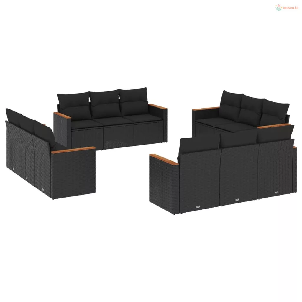 12 részes fekete polyrattan kerti ülőgarnitúra párnákkal