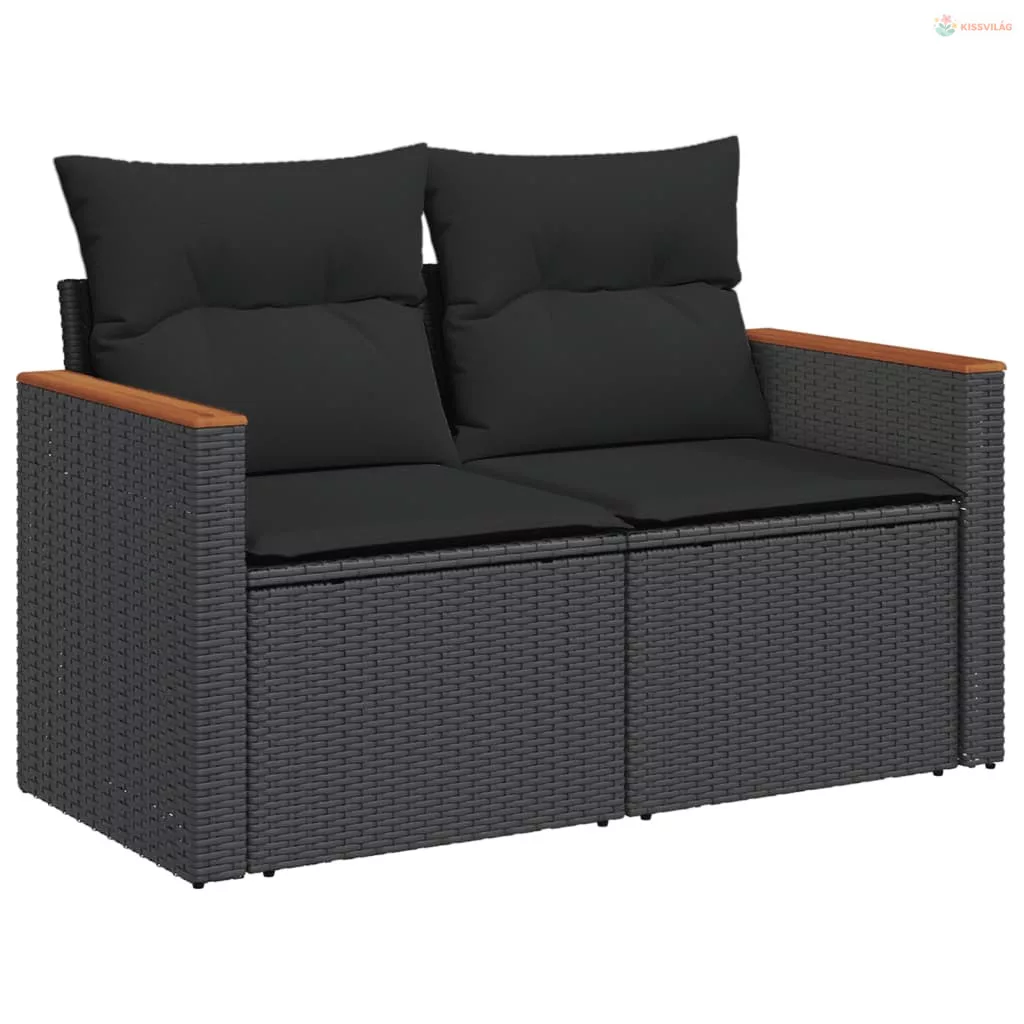 13 részes fekete polyrattan kerti ülőgarnitúra párnákkal