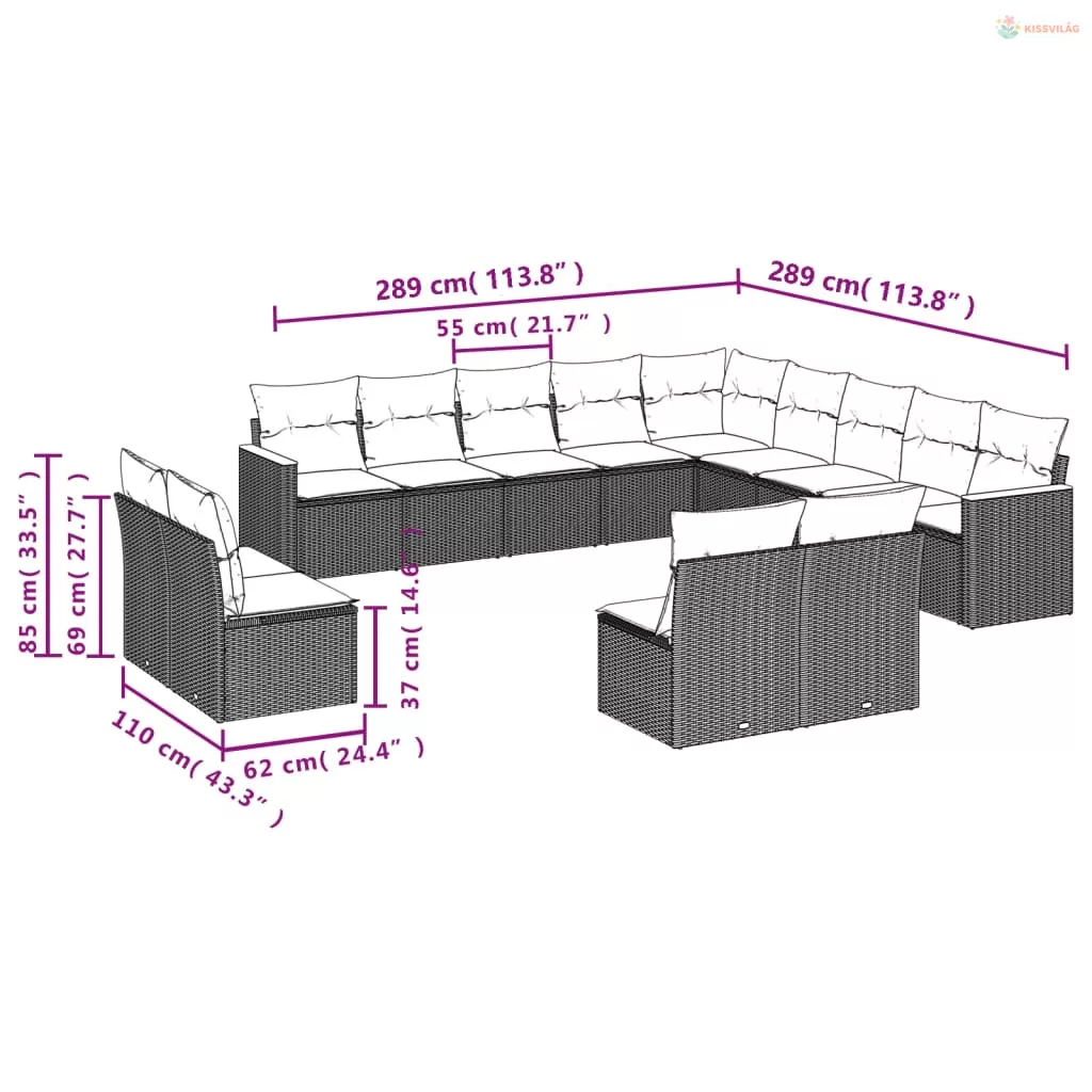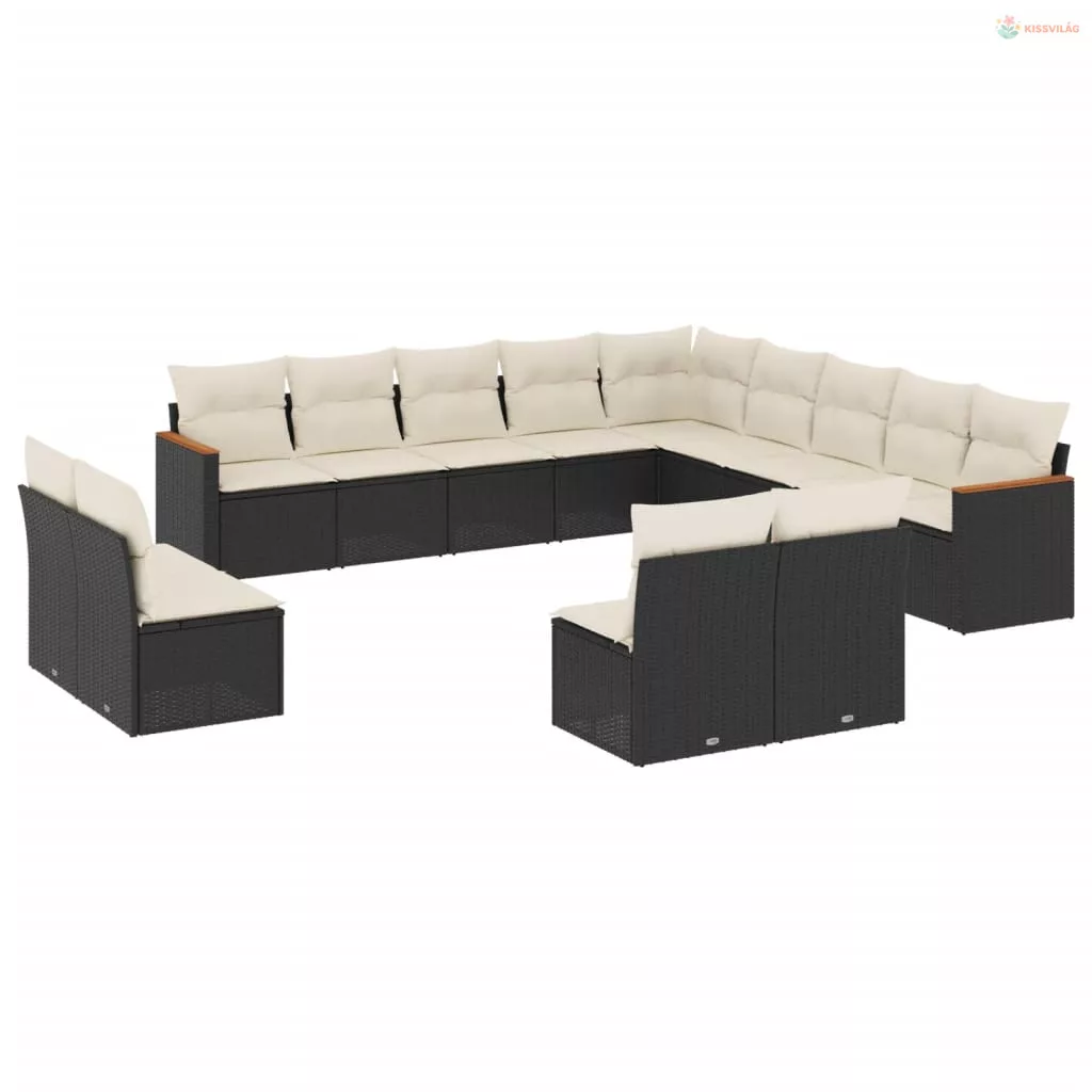 13 részes fekete polyrattan kerti ülőgarnitúra párnákkal