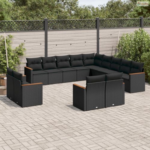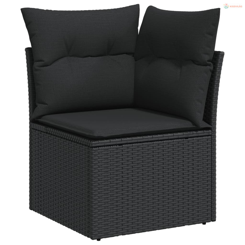 13 részes fekete polyrattan kerti ülőgarnitúra párnákkal
