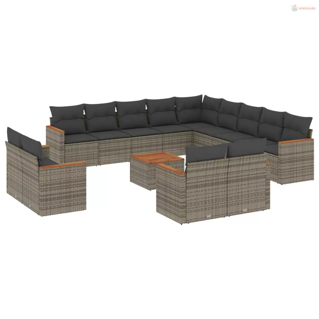 14 részes szürke polyrattan kerti ülőgarnitúra párnákkal