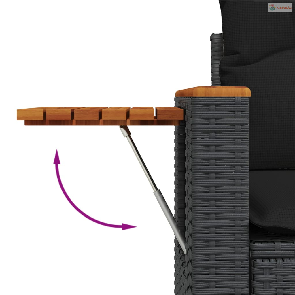 3 részes fekete polyrattan kerti ülőgarnitúra párnával