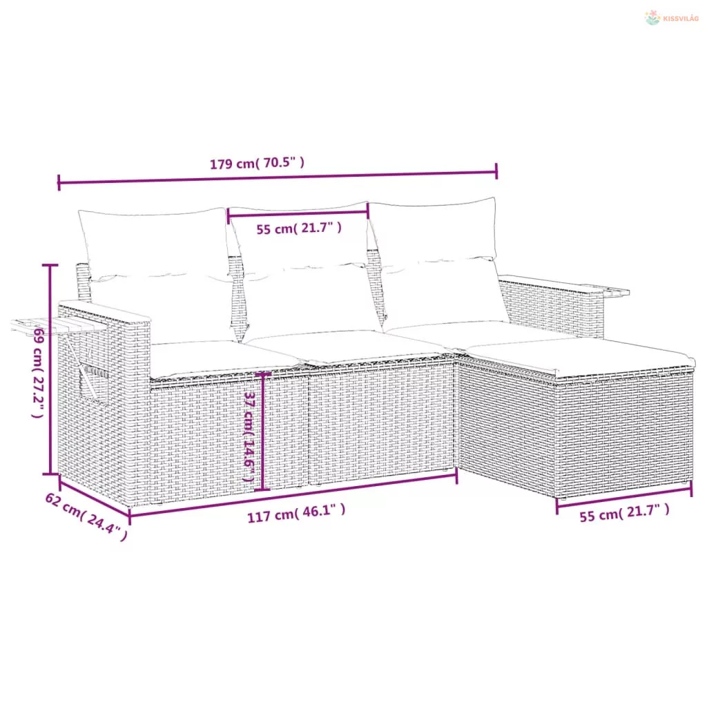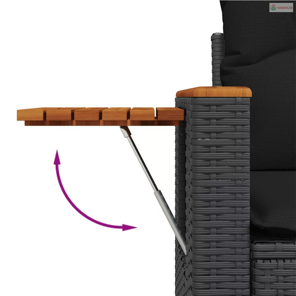 4 részes fekete polyrattan kerti ülőgarnitúra párnákkal