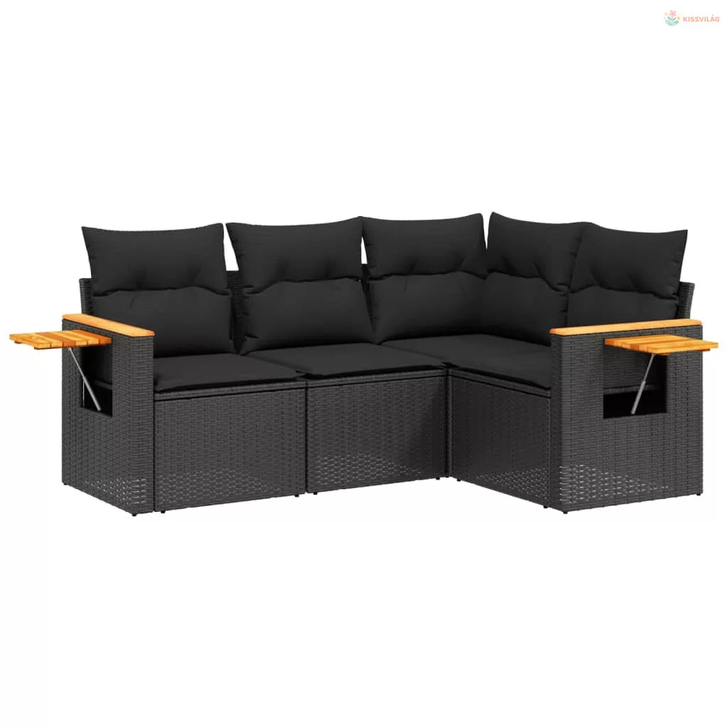 4 részes fekete polyrattan kerti ülőgarnitúra párnákkal